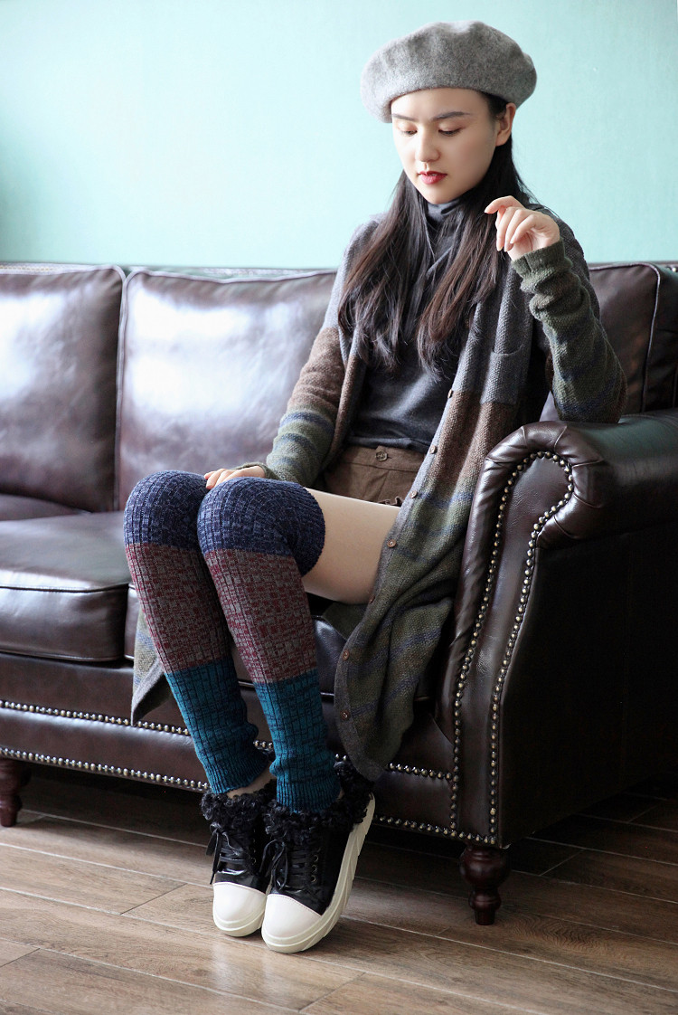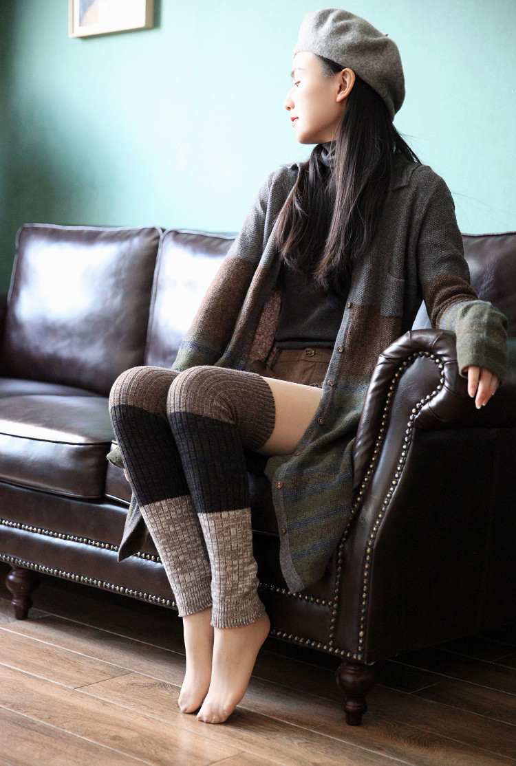 Демисезонные утепленные длинные шерстяные гетры, трикотажные наколенники, носки