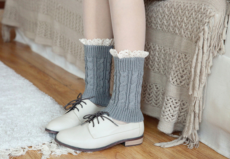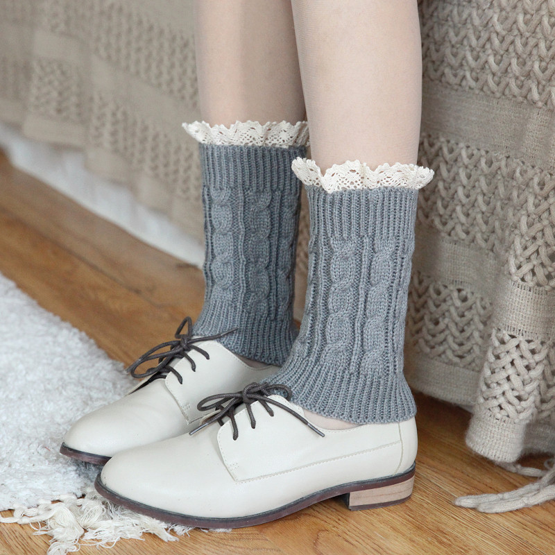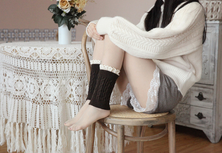 Зимние короткие утепленные гетры, кружевные наколенники, трикотажные бахилы, кружевное платье