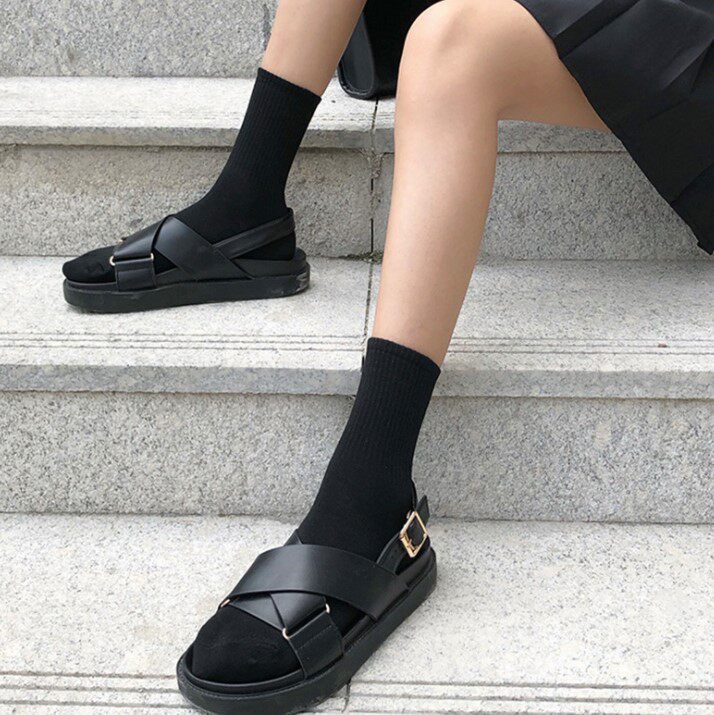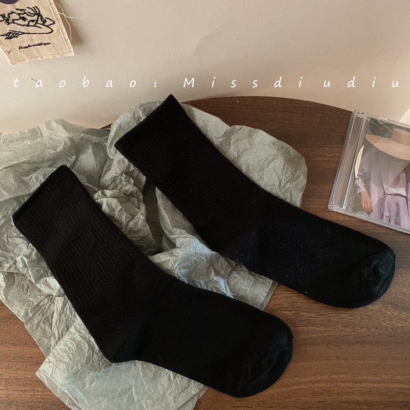 Брендовые хлопковые черные классические базовые гольфы, носки для школьников и студентов, средней длины