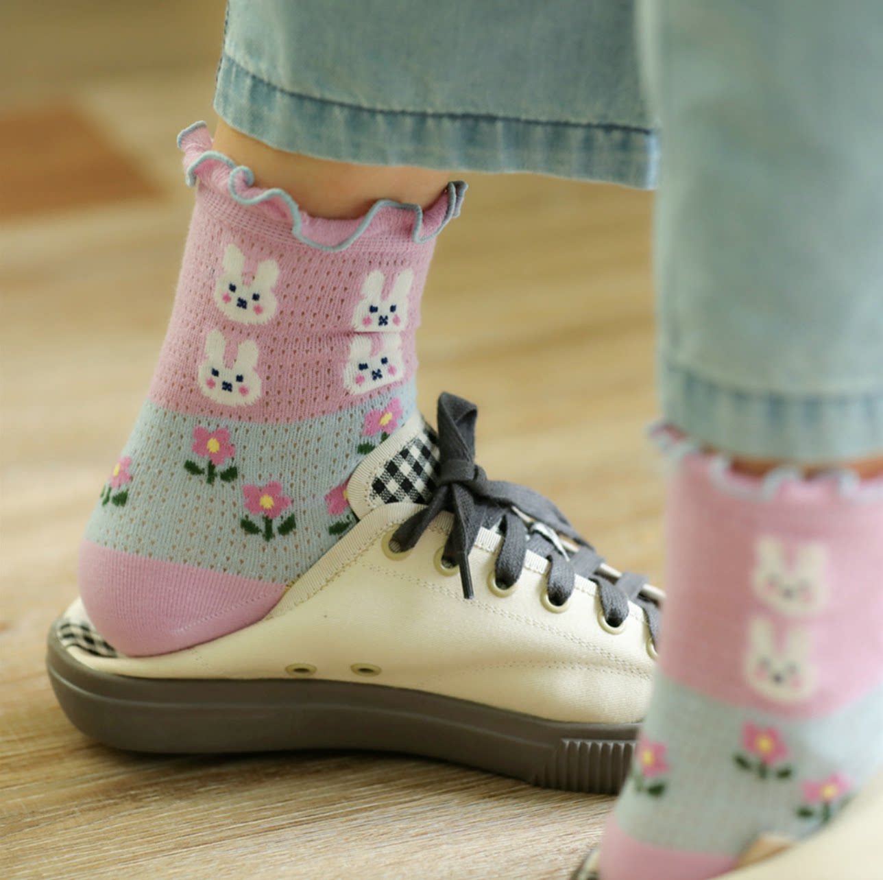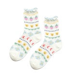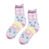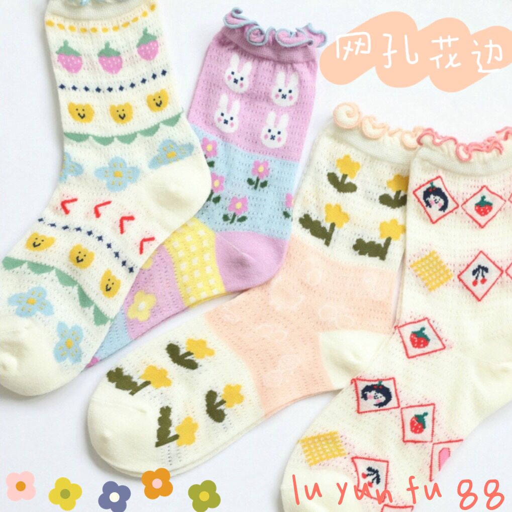 6 пар БЕСПЛАТНАЯ ДОСТАВЛЕНИЯ] Лето, лето, сетчатый кролик, кролик, цветы, клубника, женские тонкие швейные короткие хлопковые носки, студенческие кружевные носки