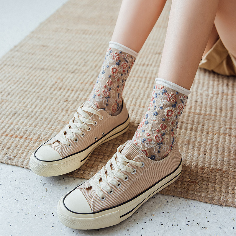 Японские ретро гольфы, носки, цветочный принт, в цветочек, средней длины