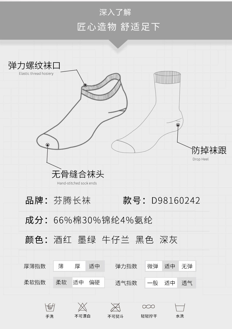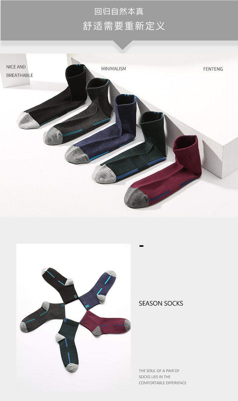 芬腾 Осенние дышащие носки, удерживающие тепло спортивные длинные гольфы, впитывают пот и запах, средней длины