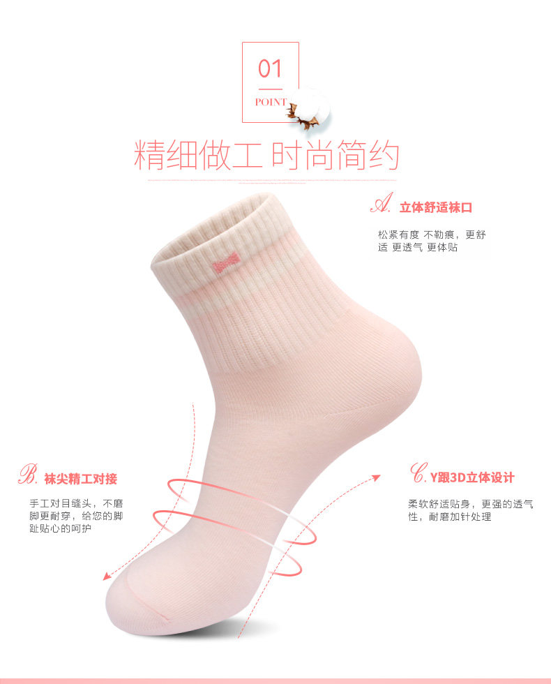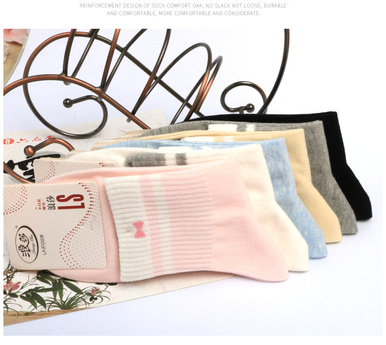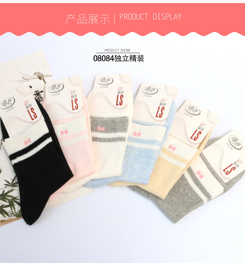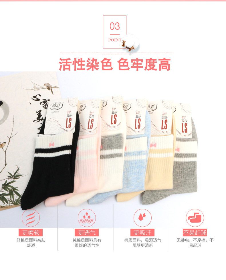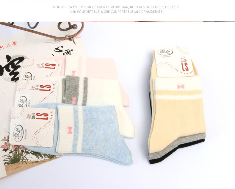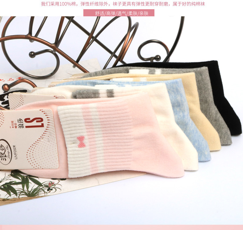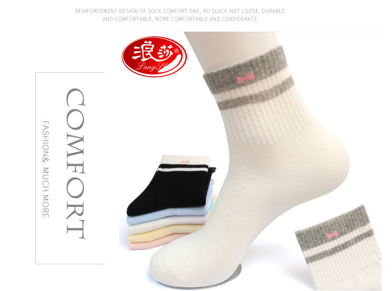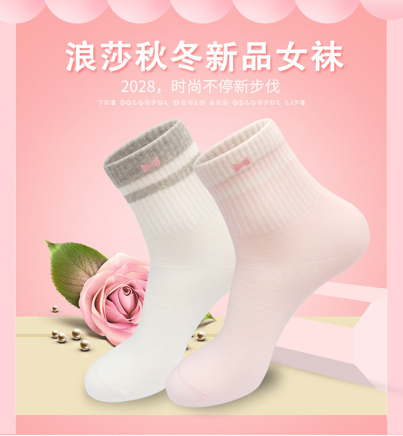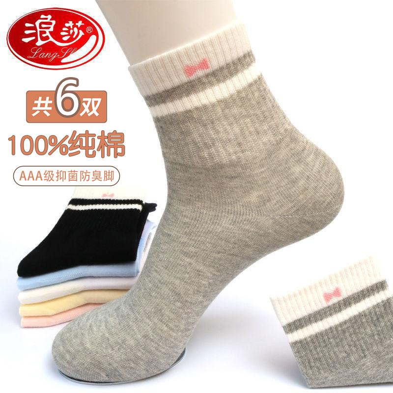 浪莎 Tide, хлопковые белые дышащие милые носки, в корейском стиле