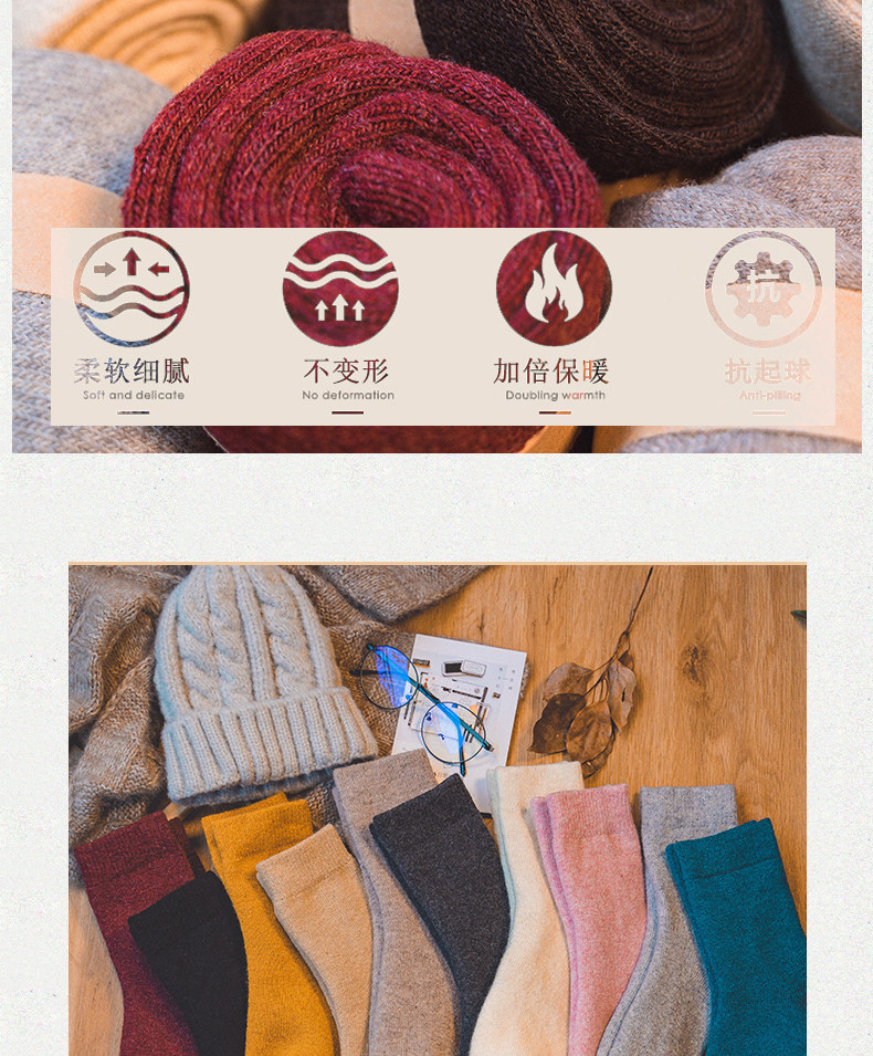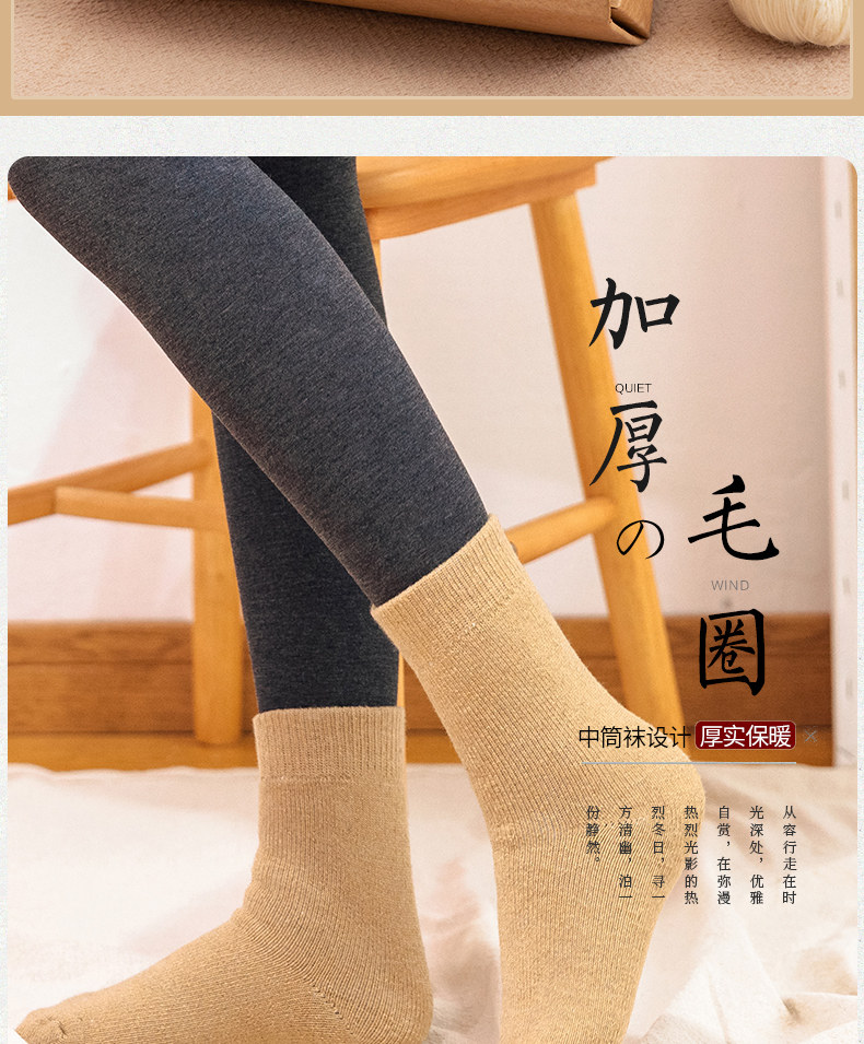 南极人 Зимние шерстяные утепленные кашемировые удерживающие тепло гольфы, средней длины