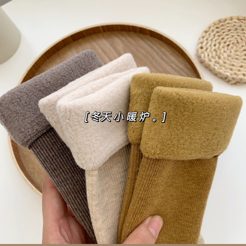 Зимняя теплая плита ~ снежные носки, носки, женщины с бархатом, теплый огонь, тепло, густые, толстые носки в середине кубика