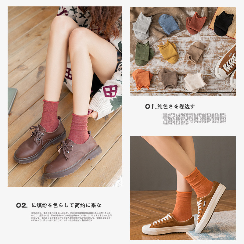 Tide, носки, демисезонные хлопковые японские хлопковые шарики, однотонные гольфы, средней длины, осенние, городской стиль