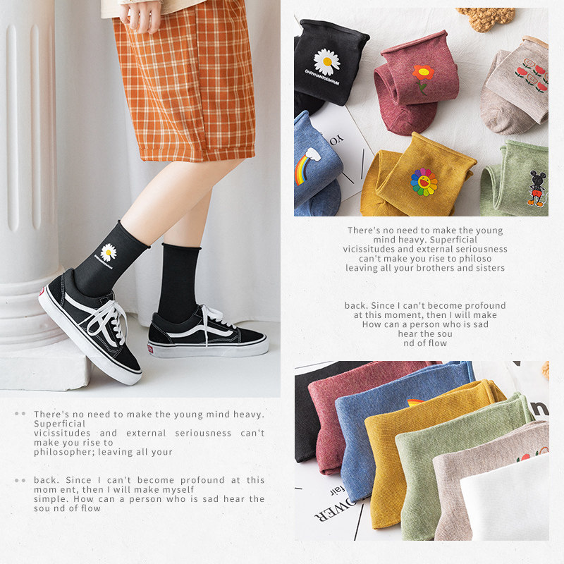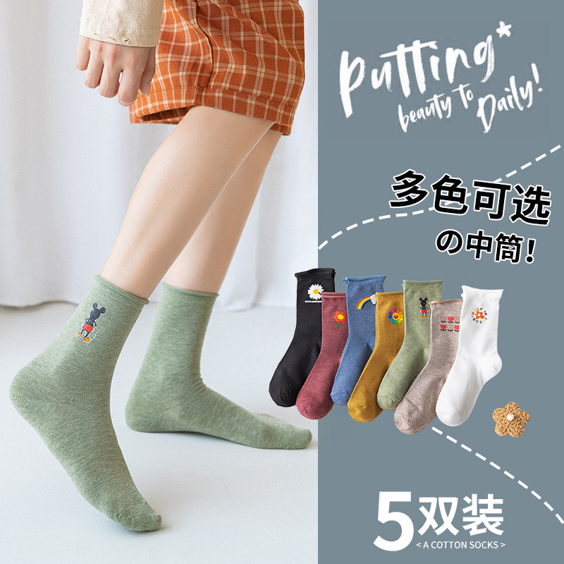 Tide, носки, хлопковые демисезонные японские мультяшные осенние трендовые гольфы, средней длины