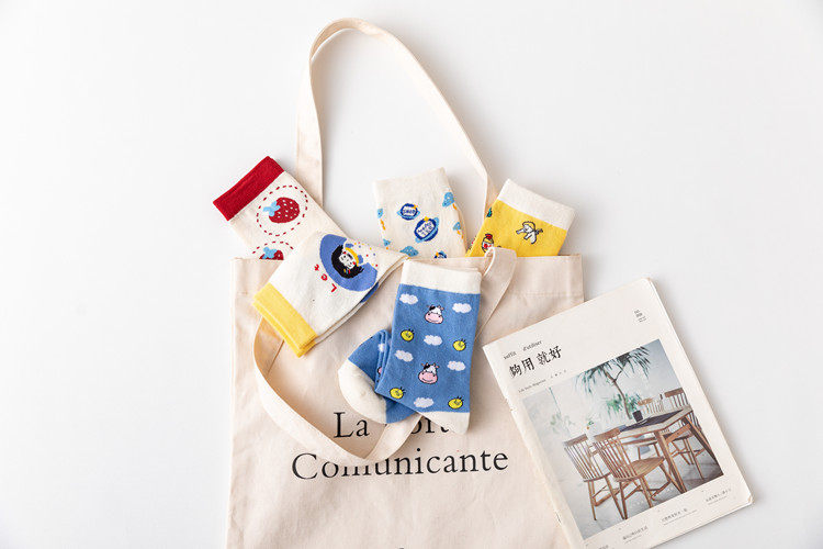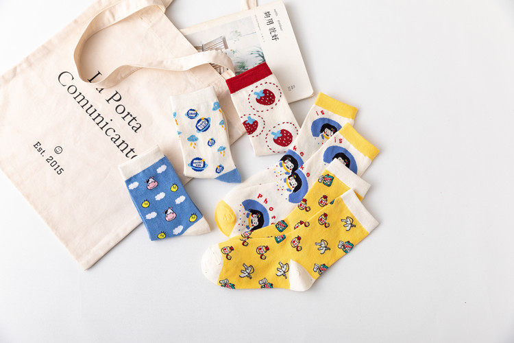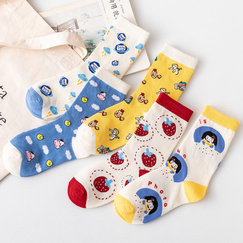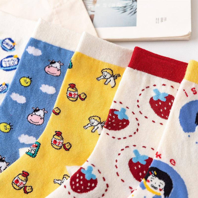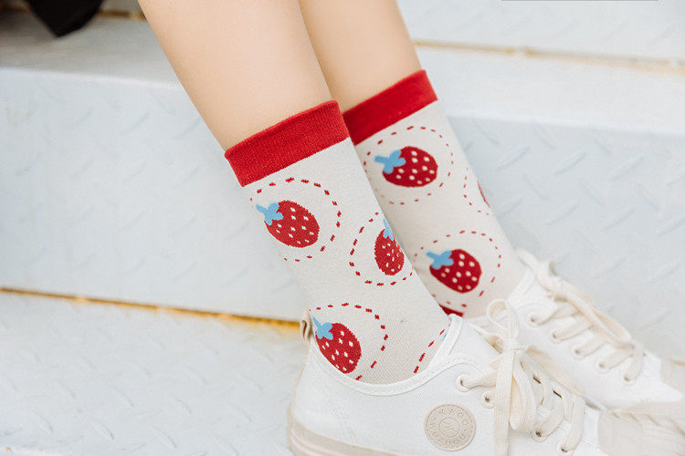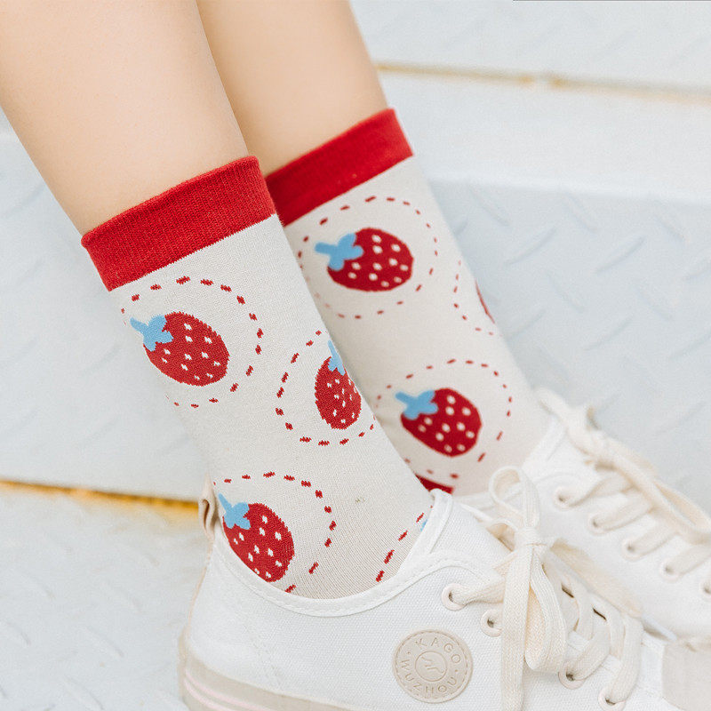 Клубника, мультяшные японские носки, милые гольфы, новая коллекция, в корейском стиле, средней длины