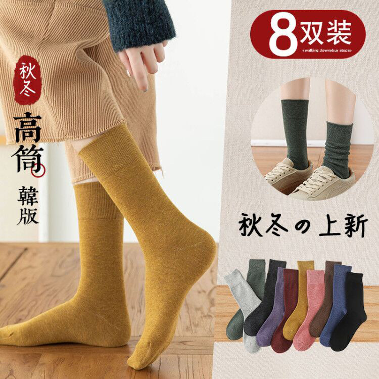 Tide, носки, хлопковые черные демисезонные гольфы, японские цветные высокие сапоги, средней длины, осенние