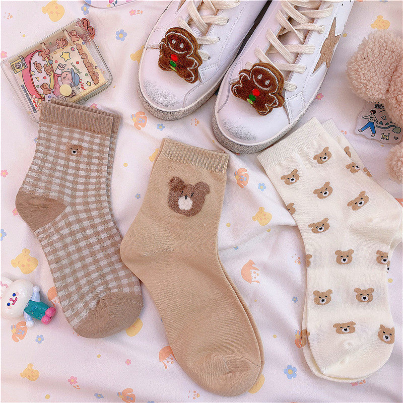 Демисезонные брендовые японские милые гольфы для школьников и студентов, милый универсальный трендовый скейтборд, с медвежатами, средней длины