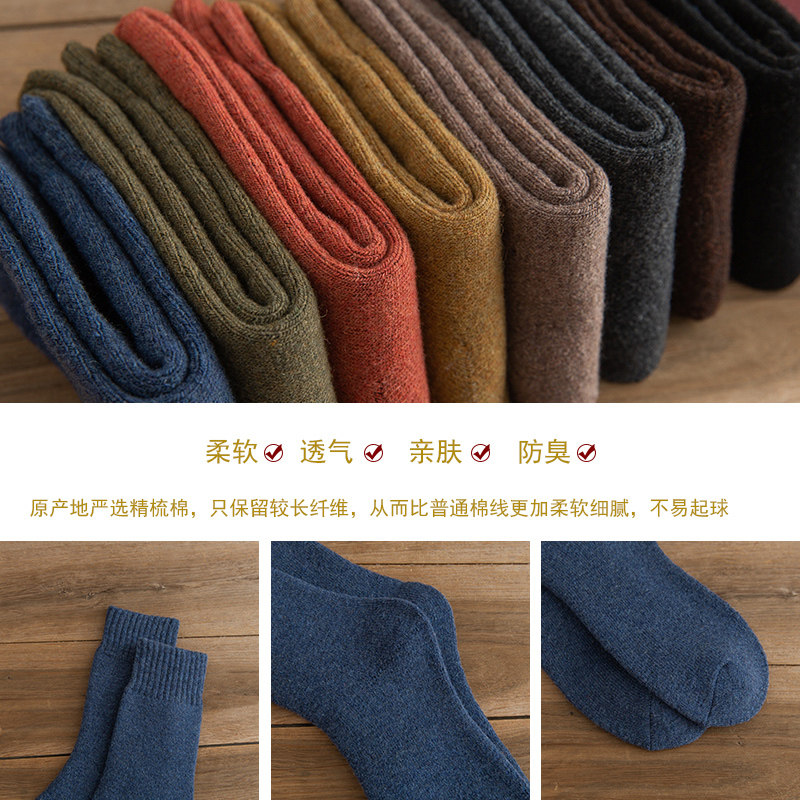 Хлопковые носки, демисезонное удерживающее тепло зимнее флисовое полотенце, зимние гольфы, увеличенная толщина, средней длины
