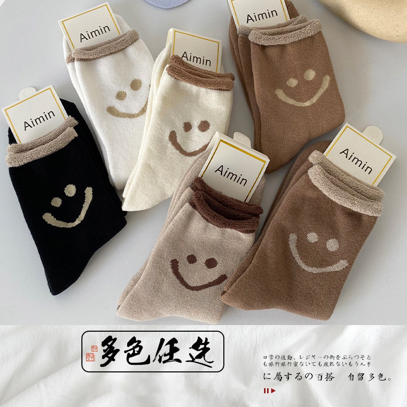 Tide, демисезонные флисовые японские носки, милые зимние хлопковые гольфы, средней длины