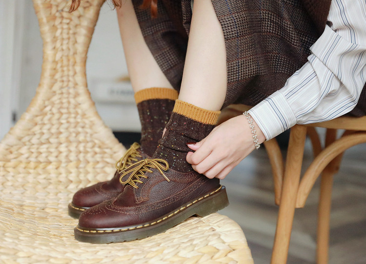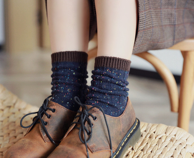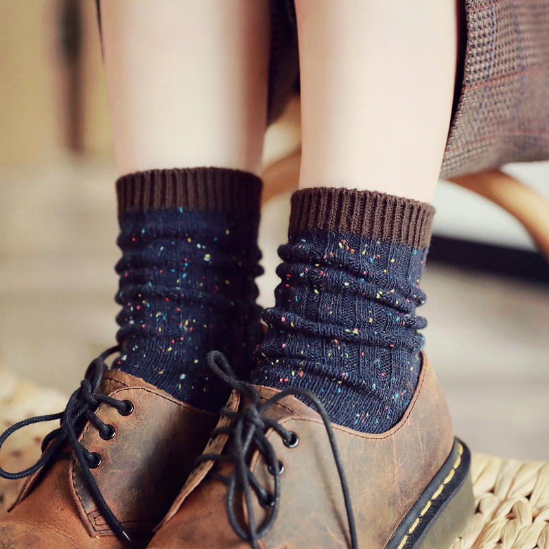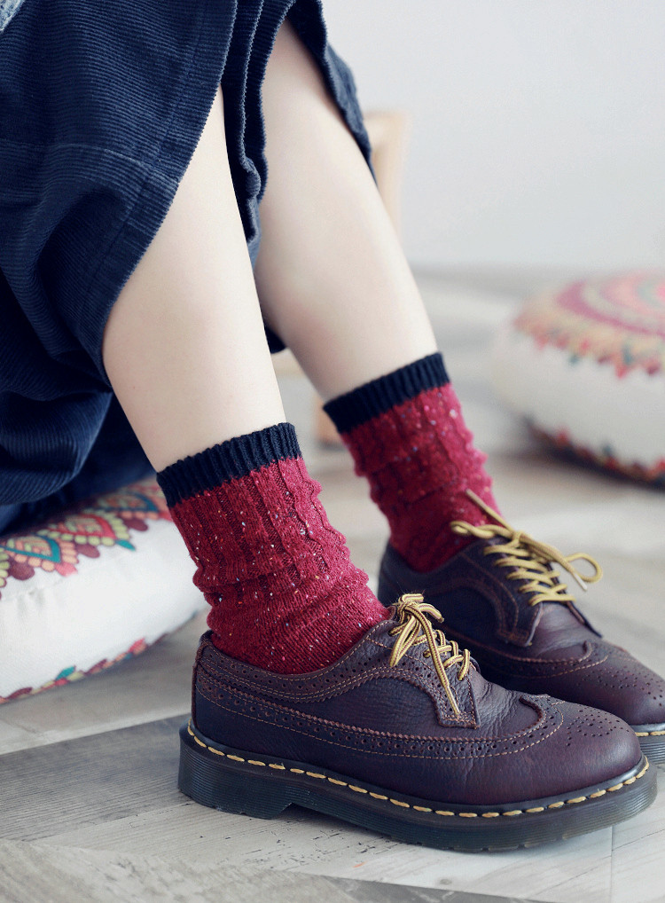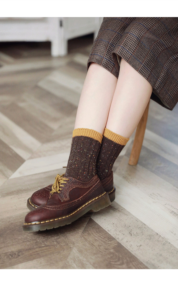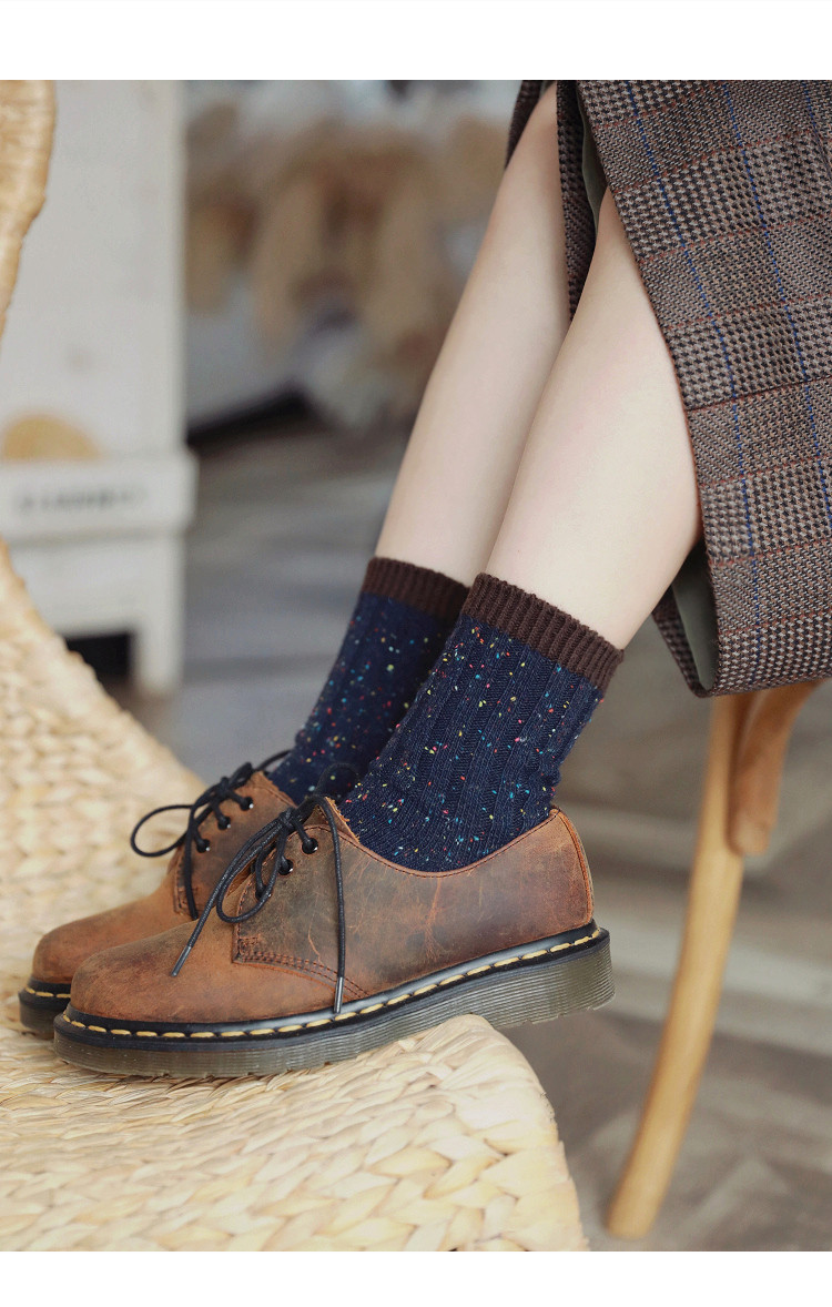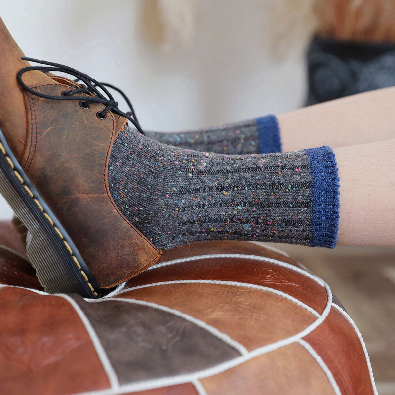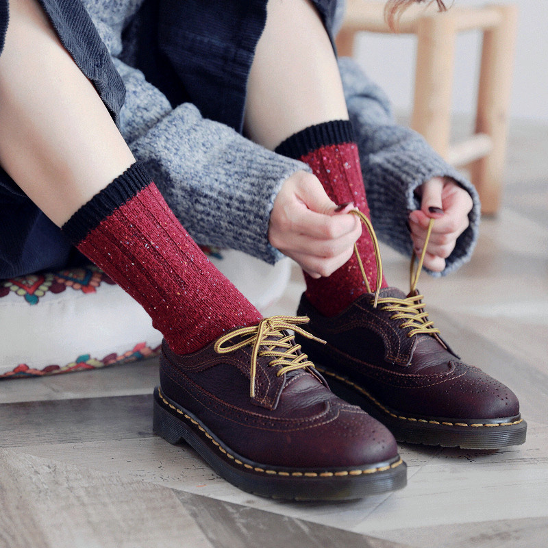 Удерживающие тепло ретро гольфы, черные хлопковые шерстяные носки, средней длины