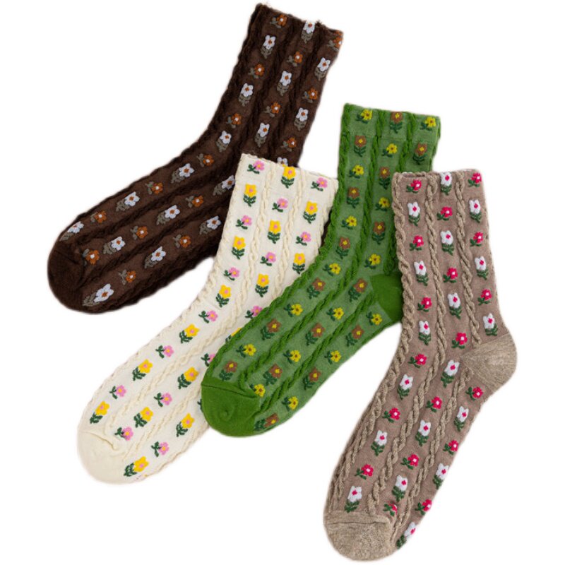 Tide, весенние ретро свежие гольфы, тренд сезона, цветочный принт, средней длины