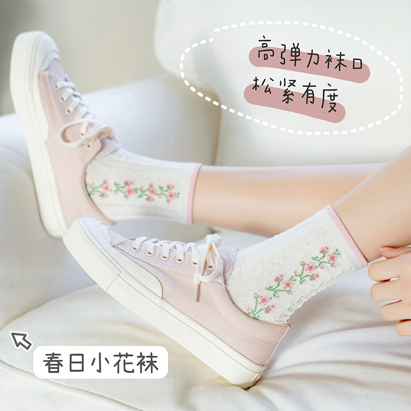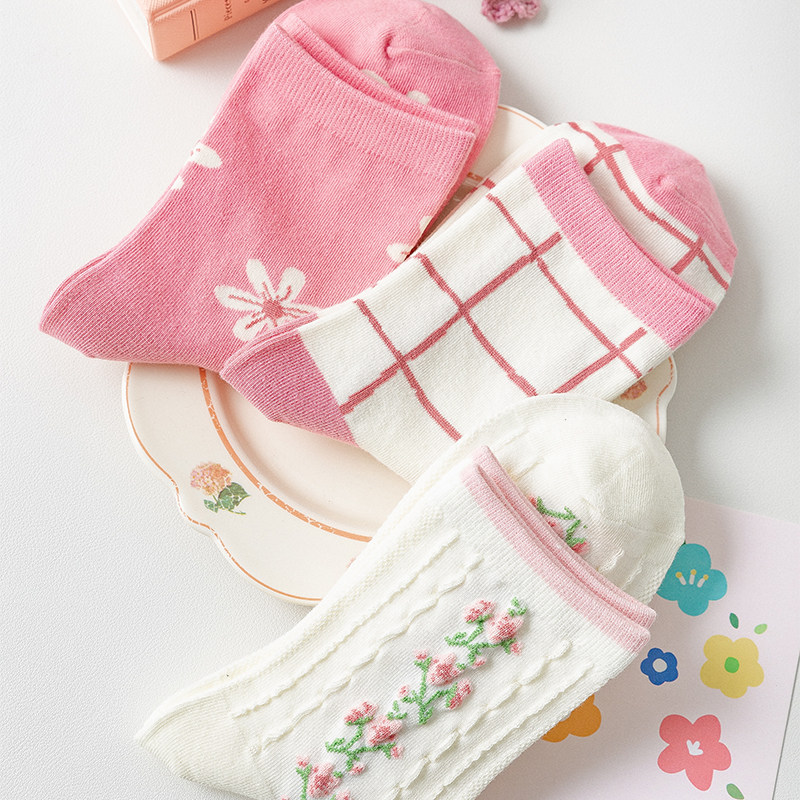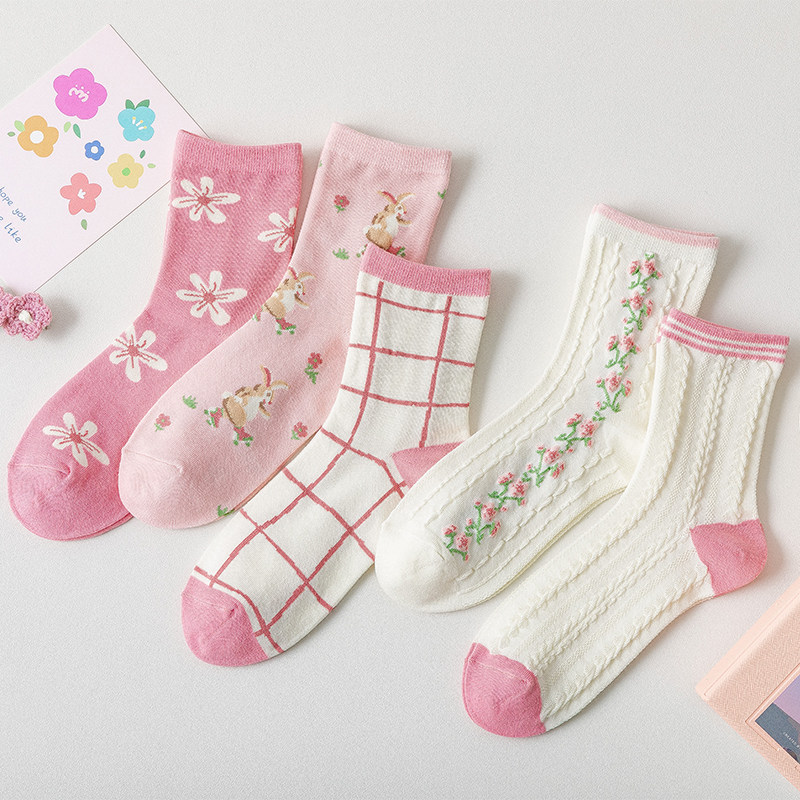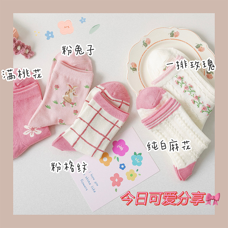 Tide, розовые осенние тонкие хлопковые носки, японские милые летние гольфы, средней длины