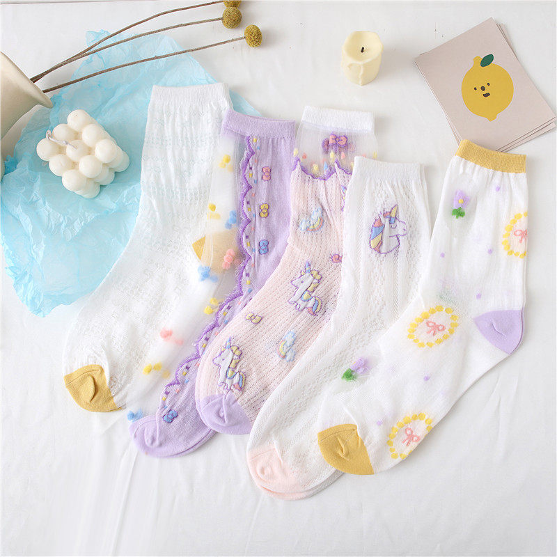Летние тонкие милые мультяшные гольфы, носки, средней длины