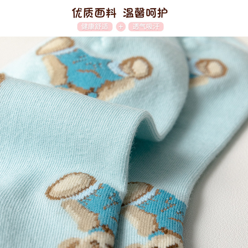 Носки, синие мультяшные летние хлопковые милые гольфы, средней длины, с медвежатами, популярно в интернете