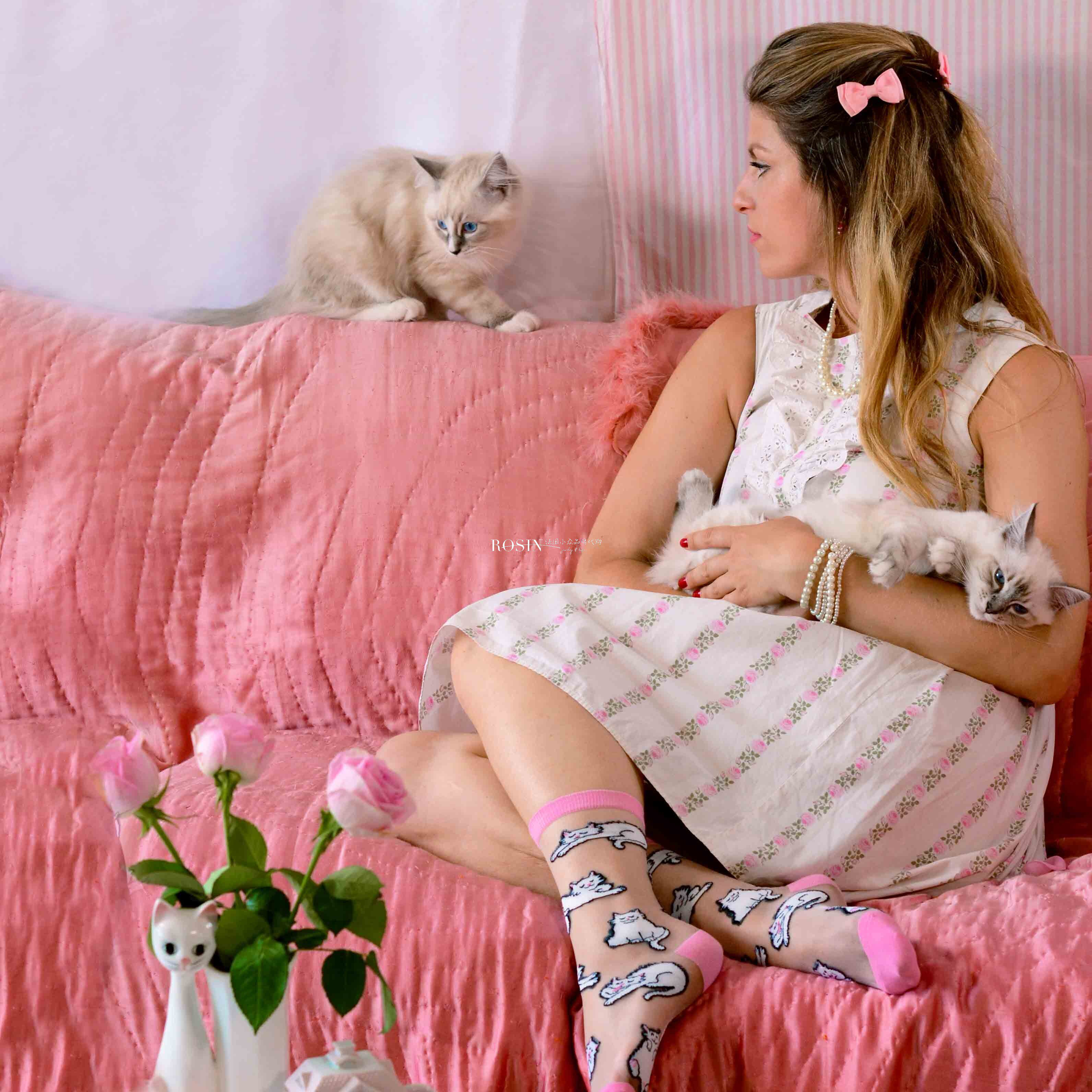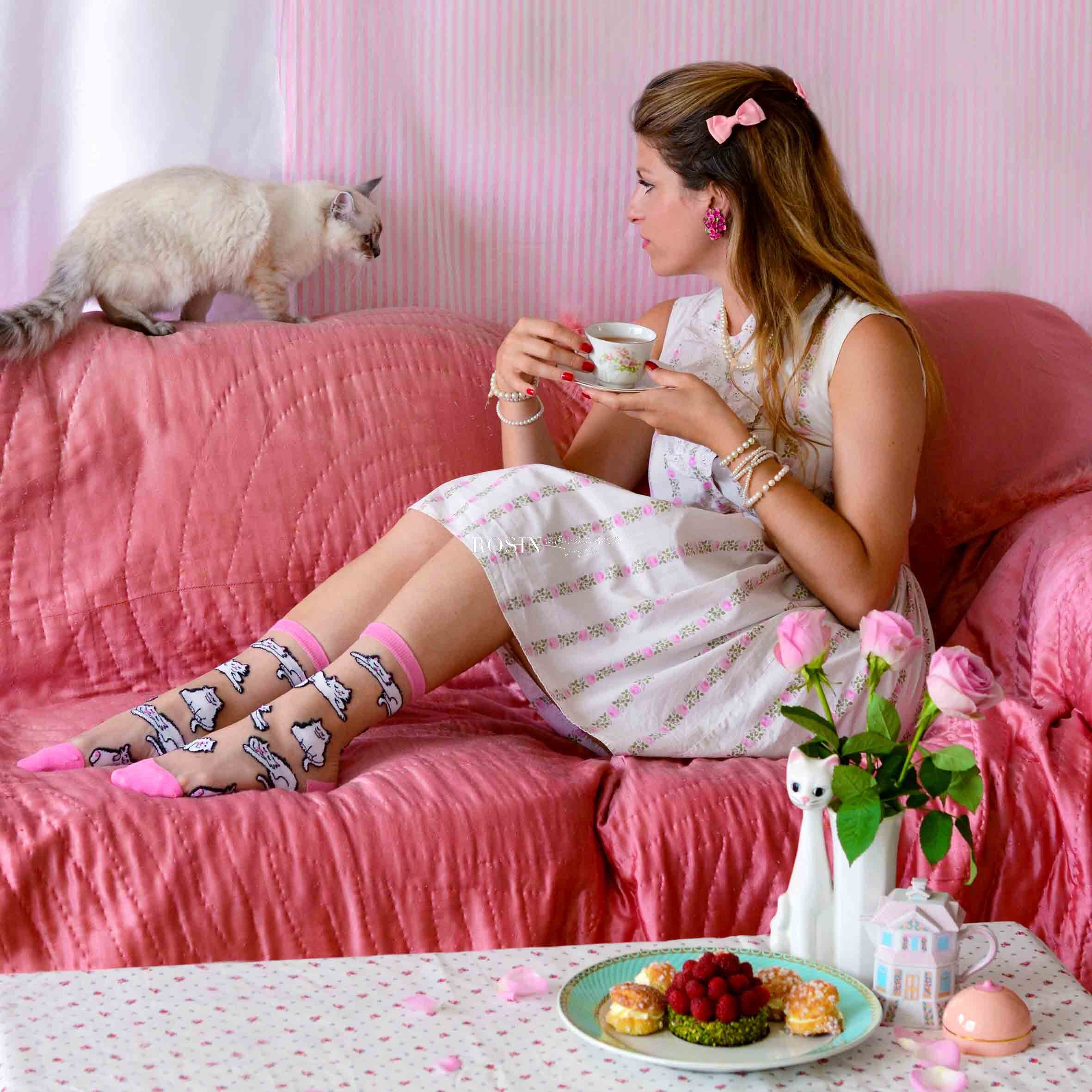 Официальный подлинный французский кукаку Suzette Pink Cat Persian Cat прозрачные хлопковые носки носки