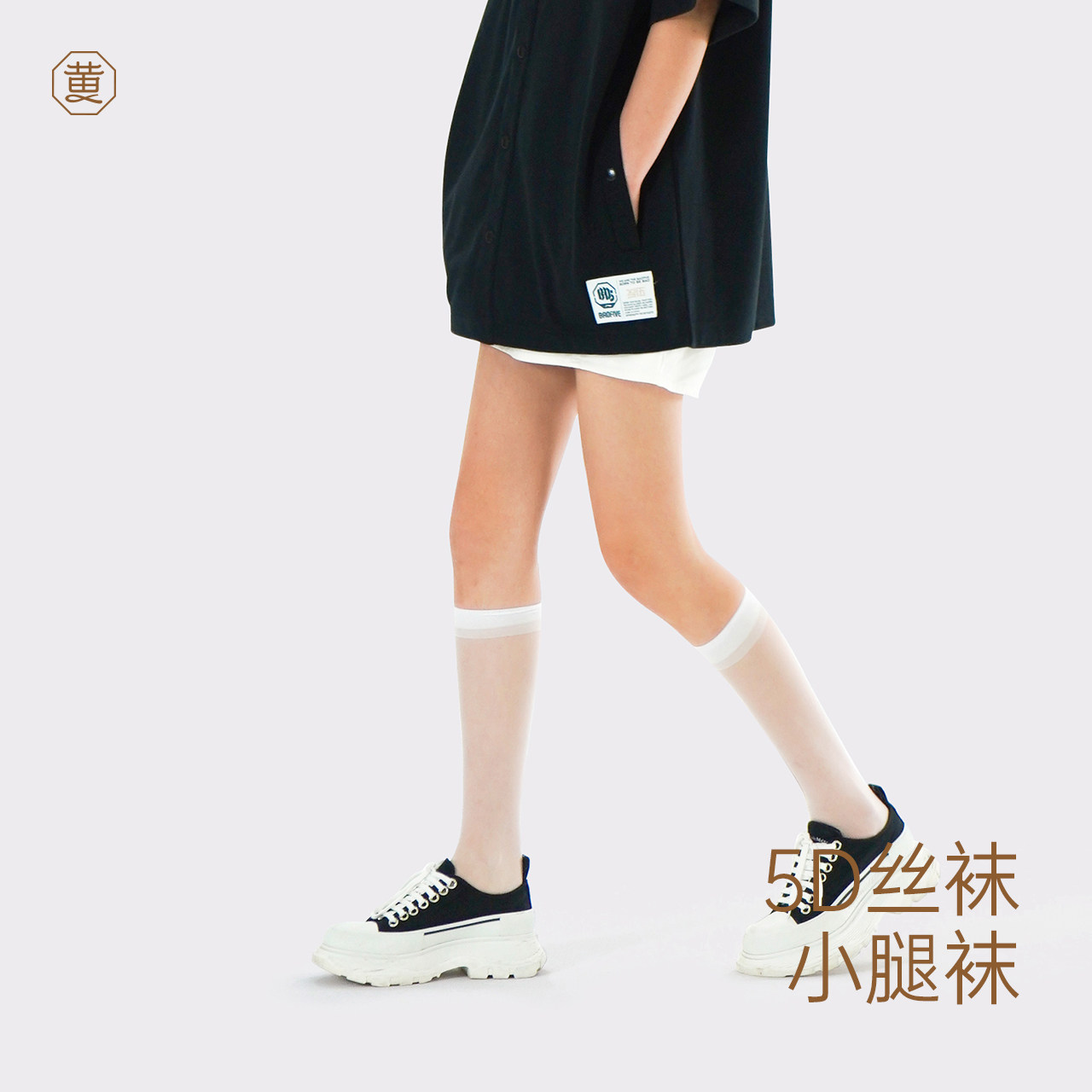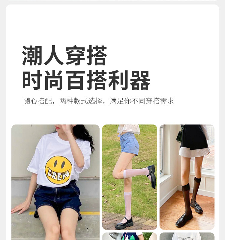 4 двойные -аут мисс Хуан 5D Прозрачные чулки легкие носки женские ультра -тонкие длинные цилиндрические носки Летние черно -белые носки JK