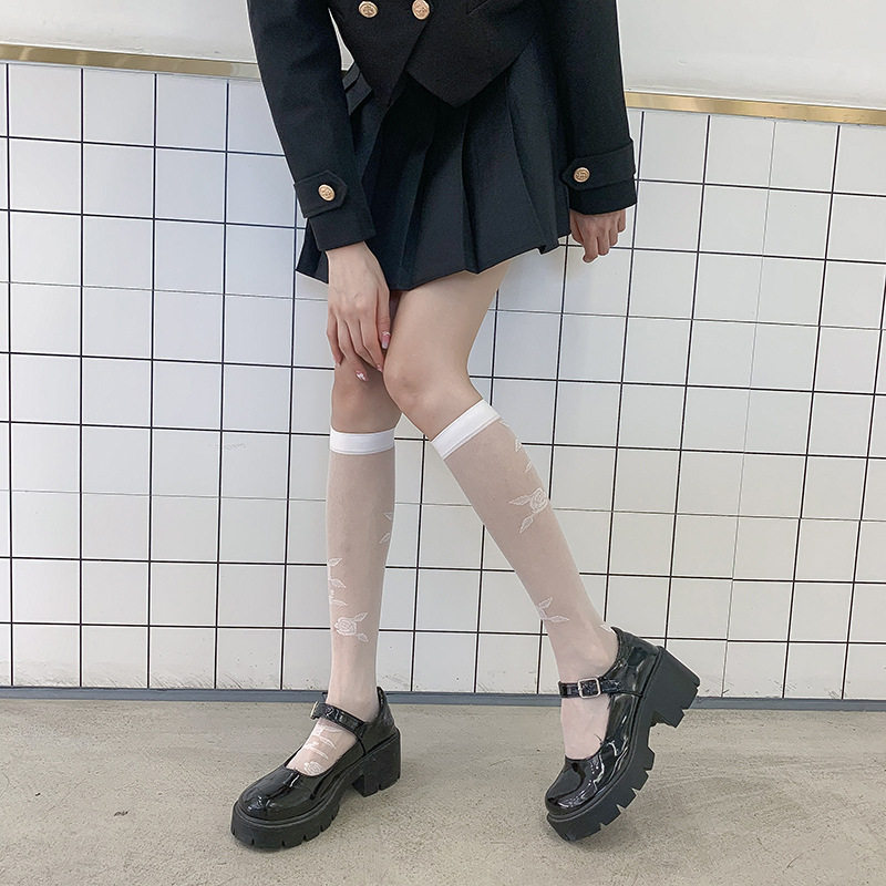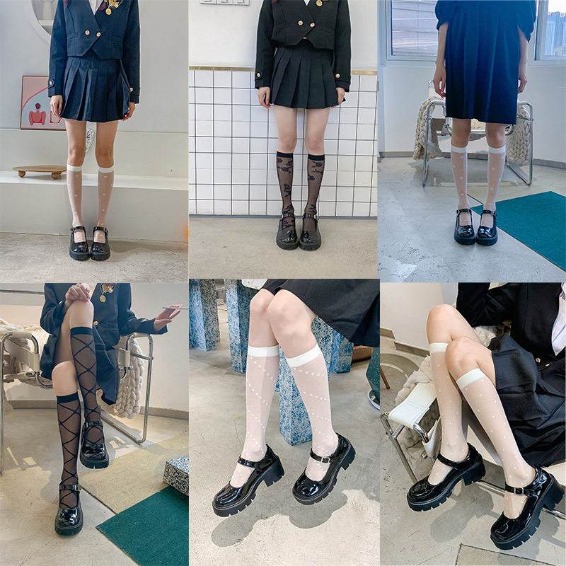 Летние тонкие дамы чулки японские сплошные телиные телят прозрачные носки JK и коленные носки