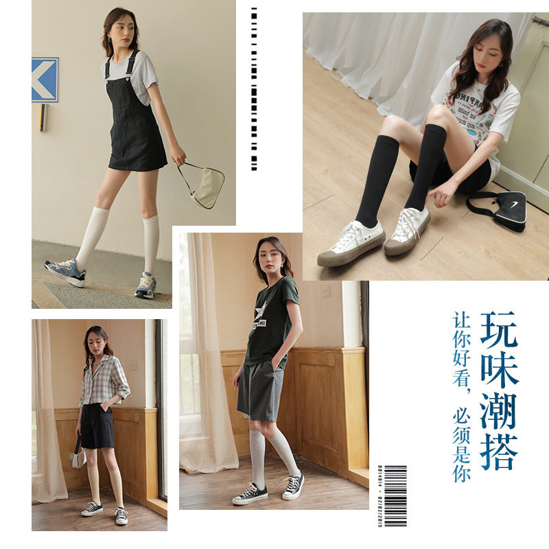 Давящие носки до икры, летние тонкие длинные гольфы из чистого хлопка, упругие носки, носки JK, женские высокие однотонные носки-трубы