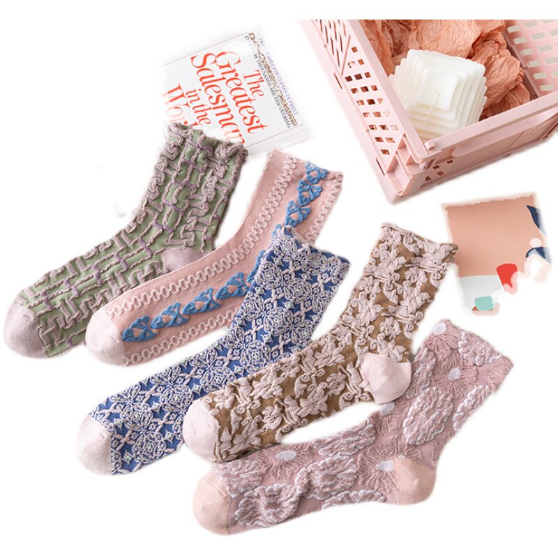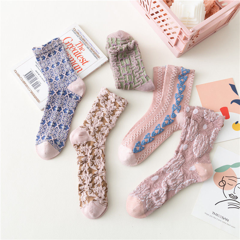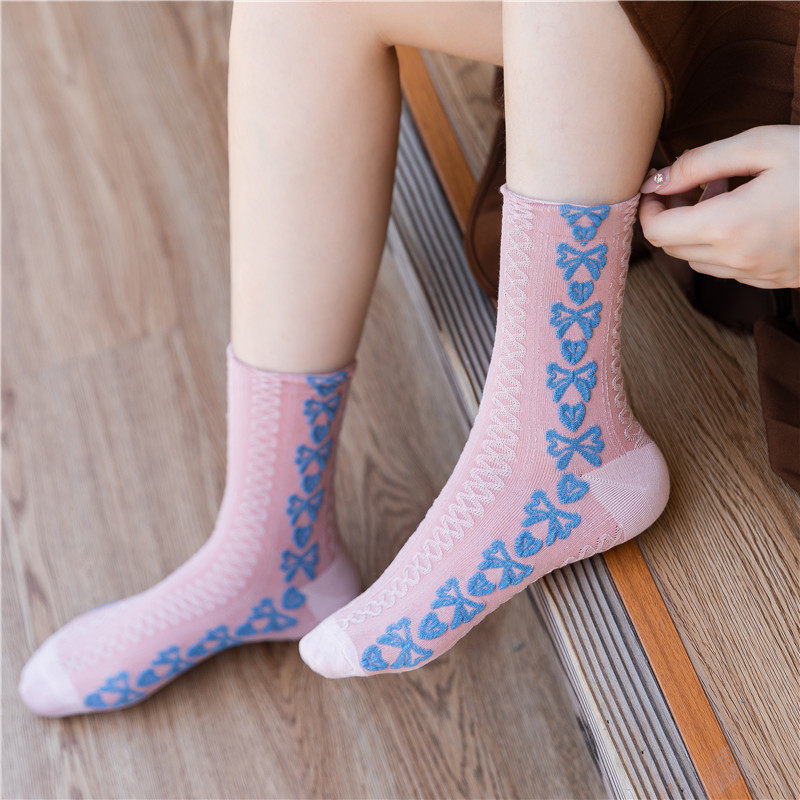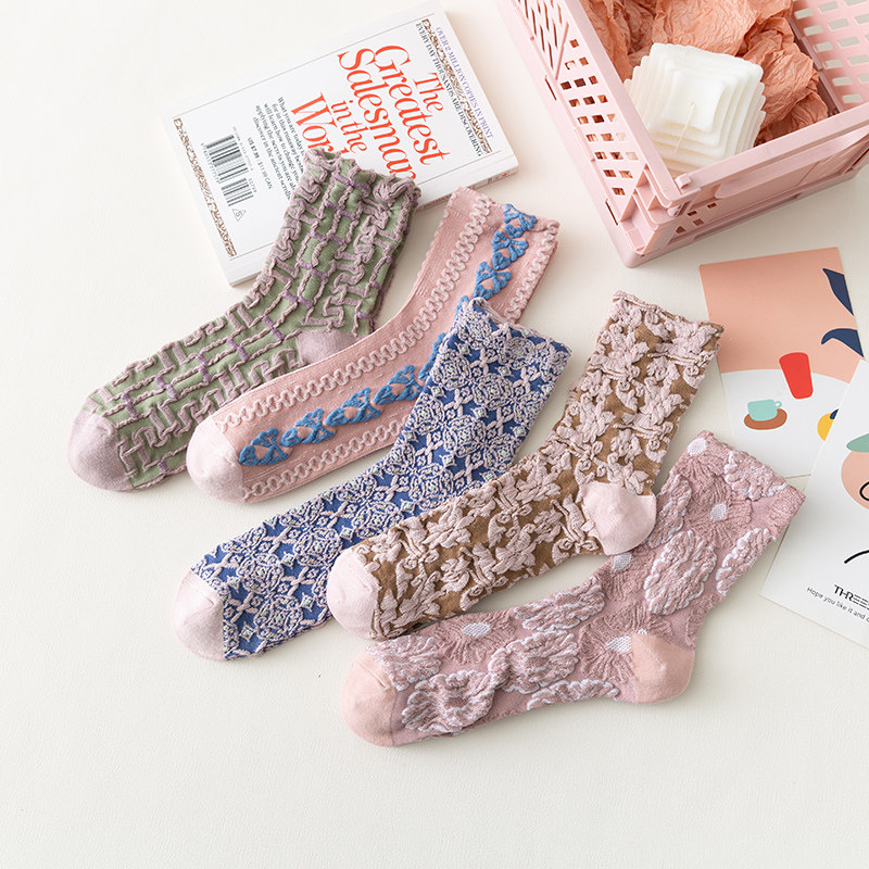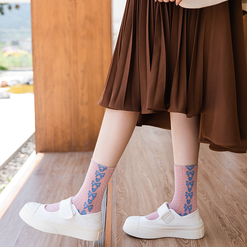 Розовые брендовые этнические ретро демисезонные носки, стиль Лолита, этнический стиль, средней длины