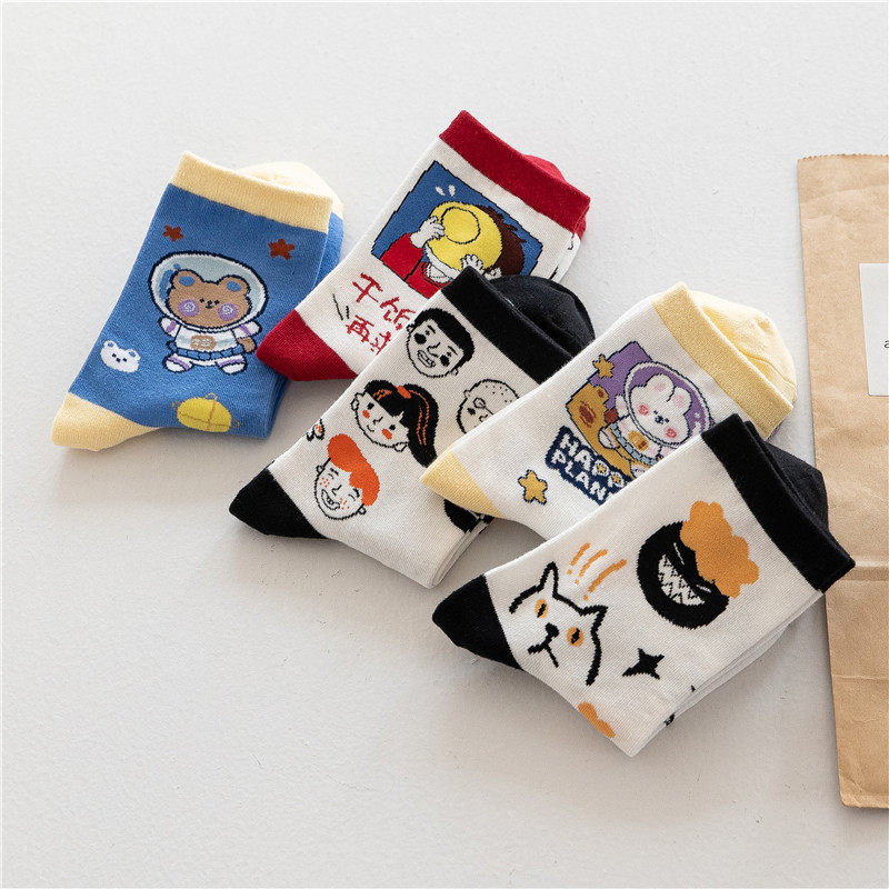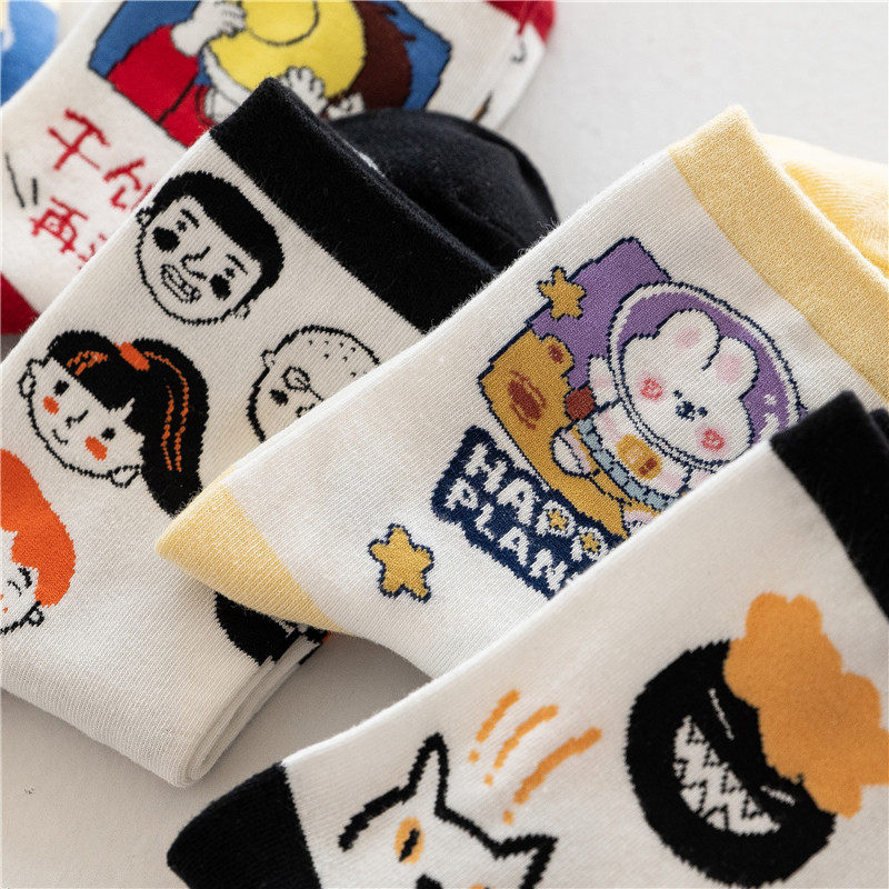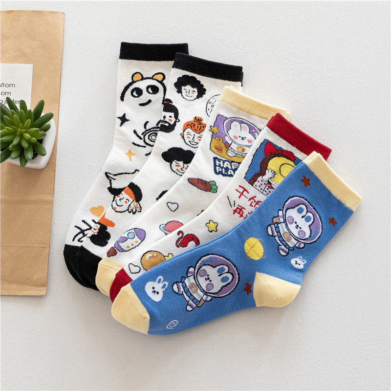 Японские мультяшные милые осенние гольфы, спортивные носки для школьников и студентов, средней длины