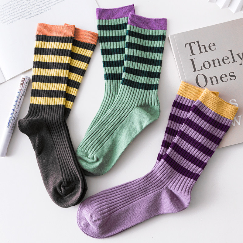 Ретро демисезонные цветные носки, коричневые сиреневые гольфы
