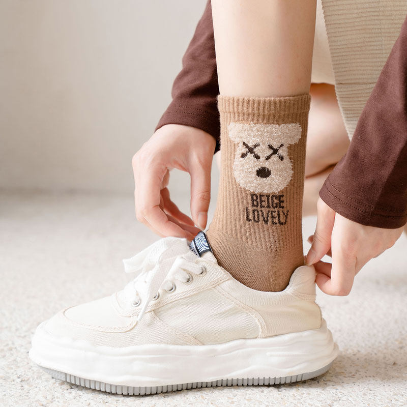 Tide, японские мультяшные коричневые спортивные гольфы подходит для мужчин и женщин для школьников и студентов, средней длины