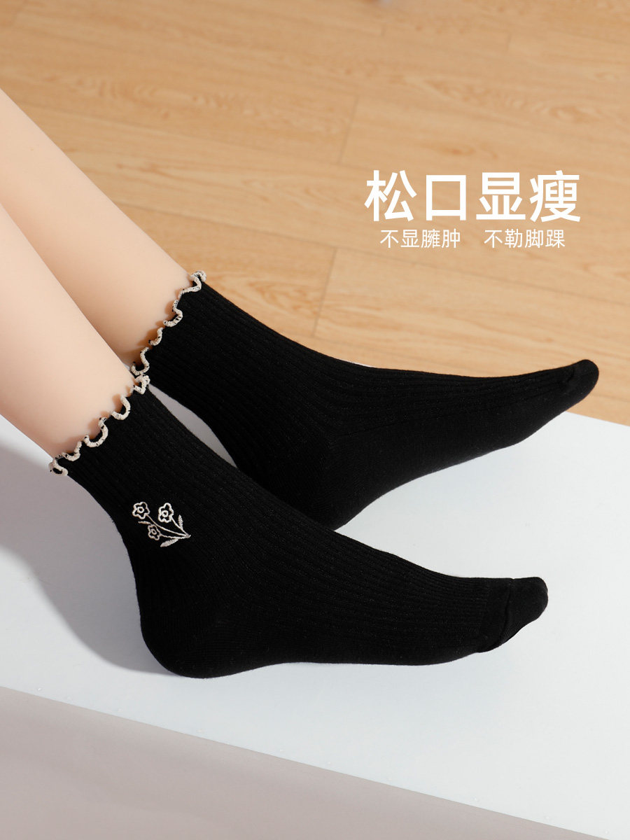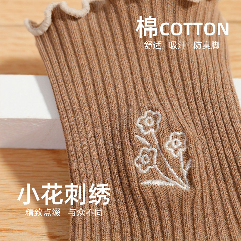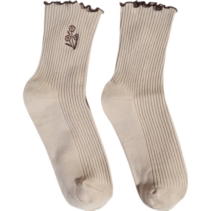 Носки, японские осенние гольфы, средней длины, с вышивкой