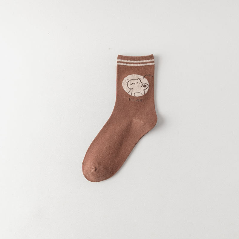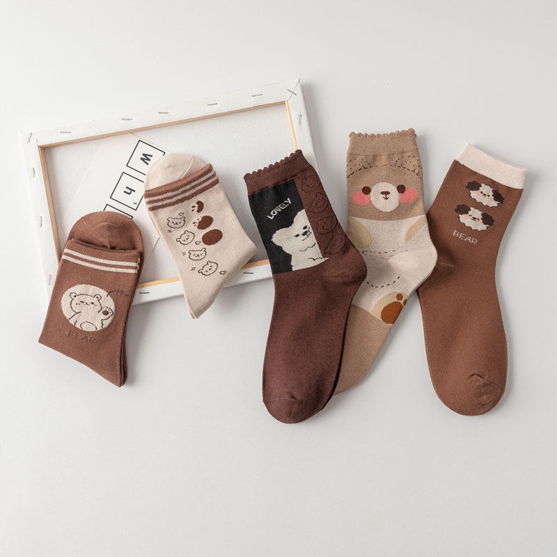 Брендовые японские мультяшные коричневые носки, с медвежатами, средней длины