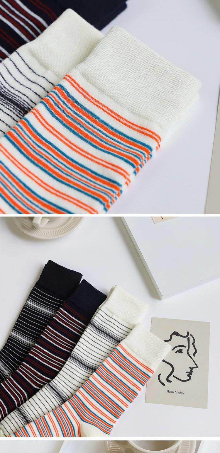 Осенние и зимние корейские полосатые носки для женщин, носки до середины икры, модные хлопковые студенческие носки, простые и универсальные модные чулки.