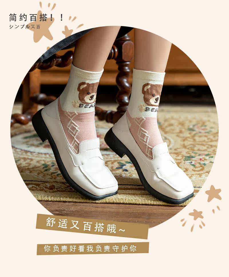 Зимние хлопковые утепленные удерживающие тепло милые японские демисезонные носки, с медвежатами