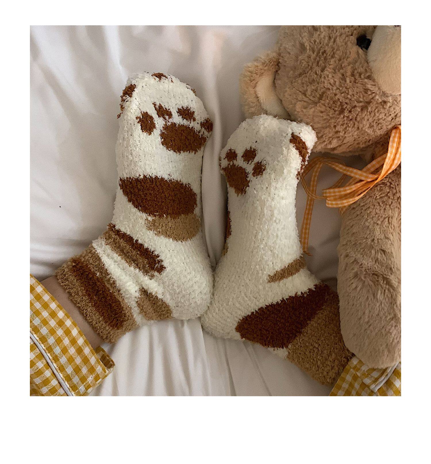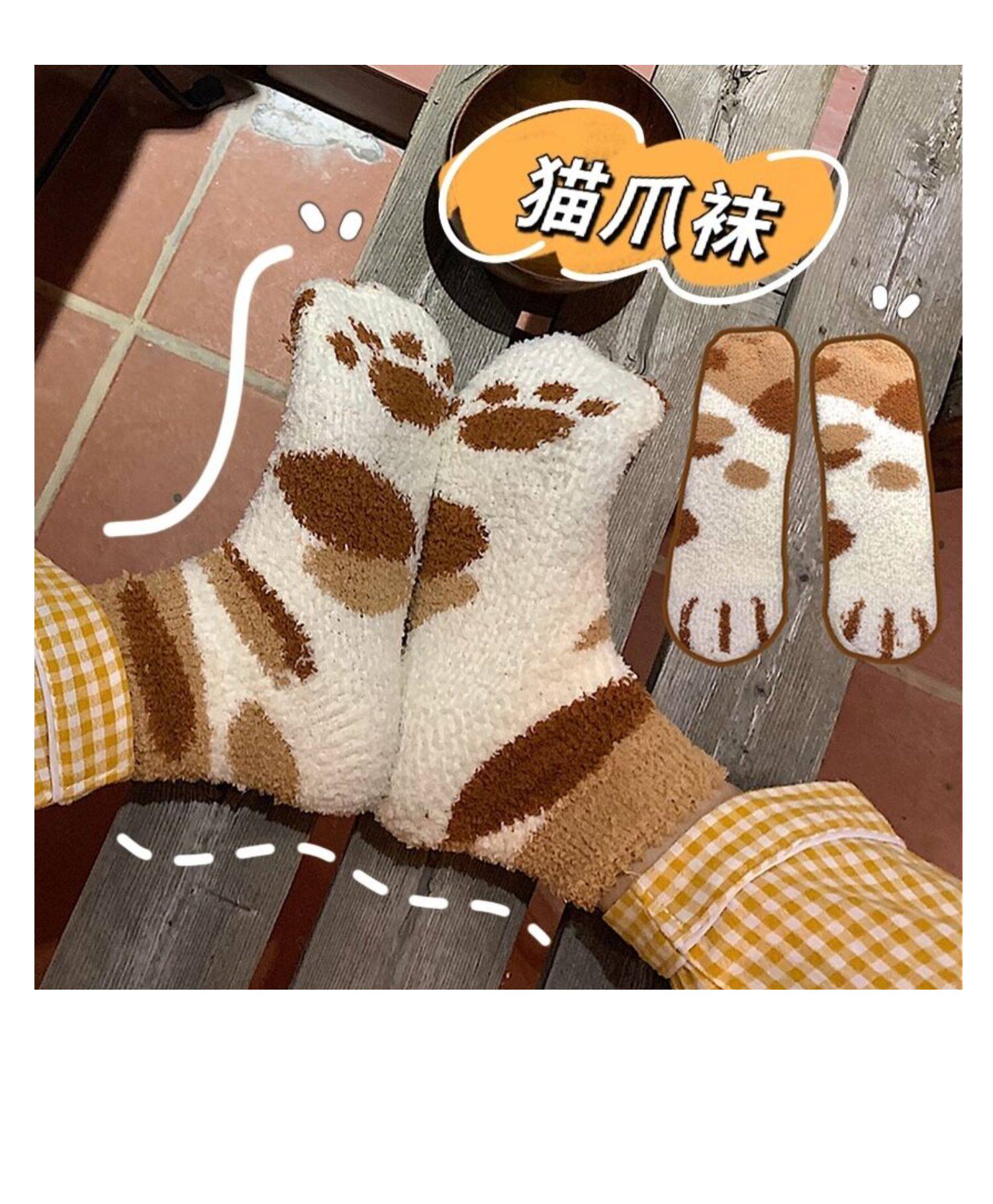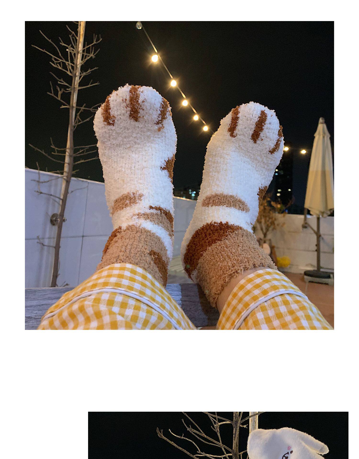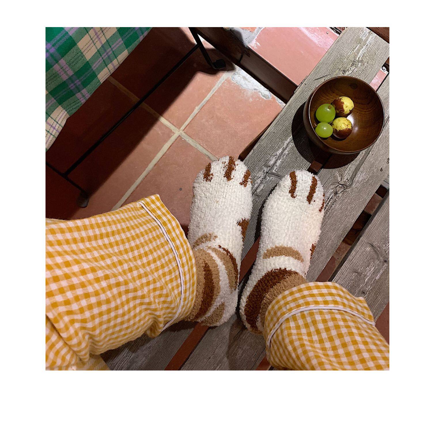 细细条 Зимние удерживающие тепло милые носки, коралловые бархатные гольфы, средней длины