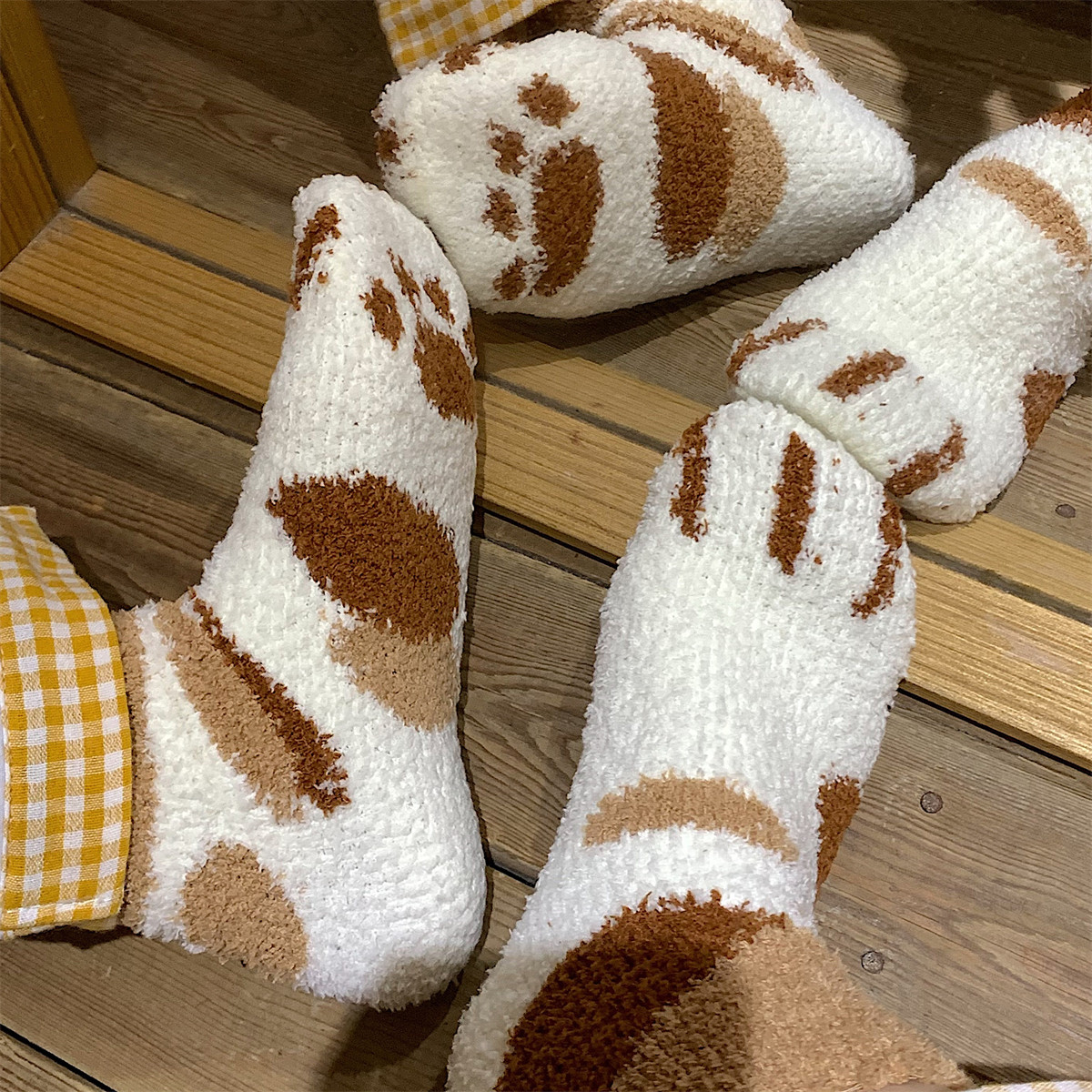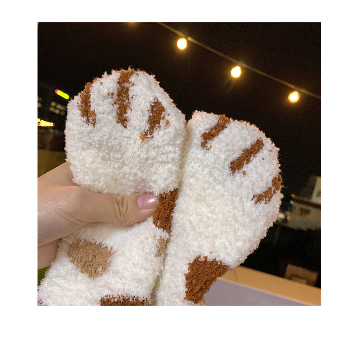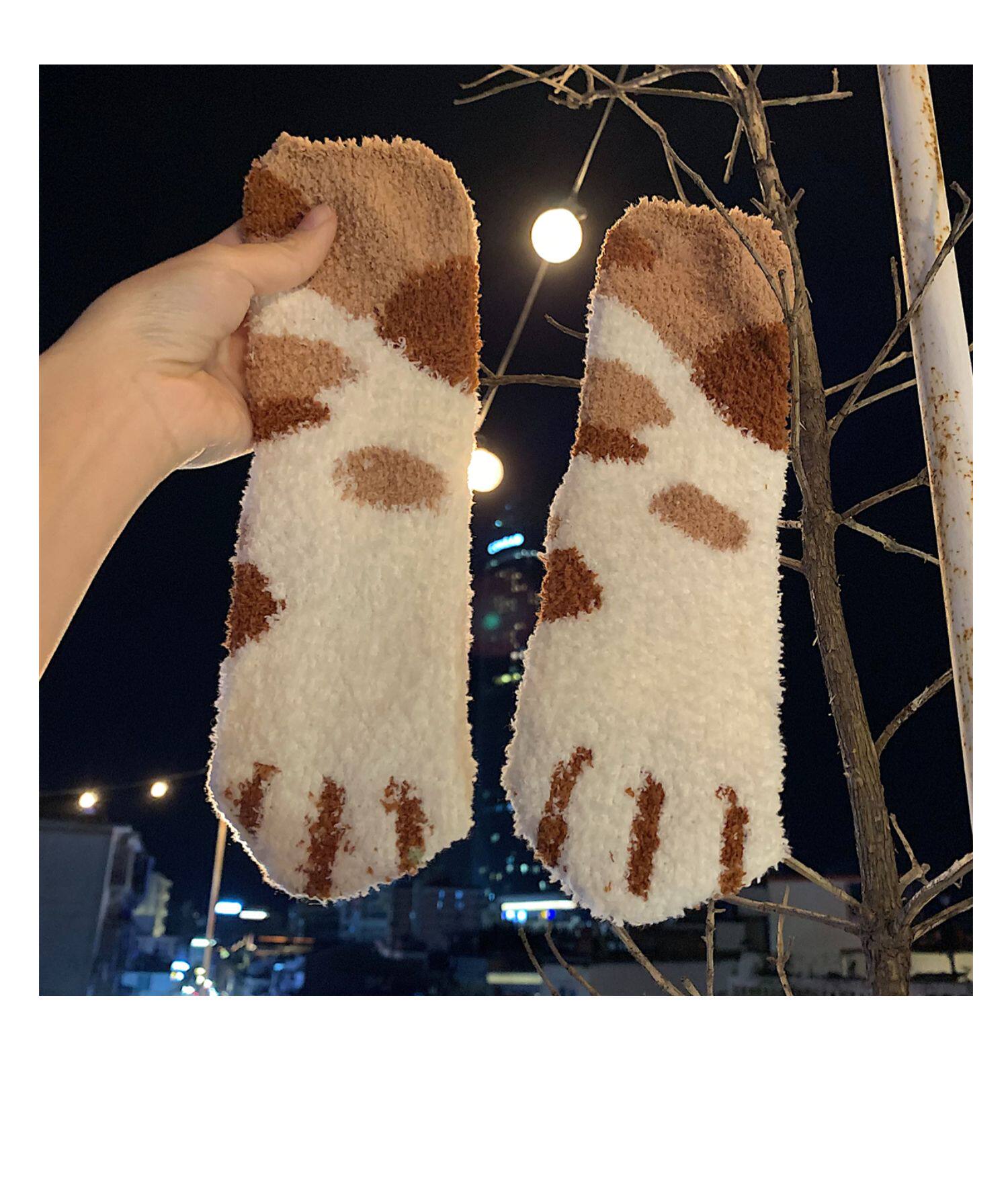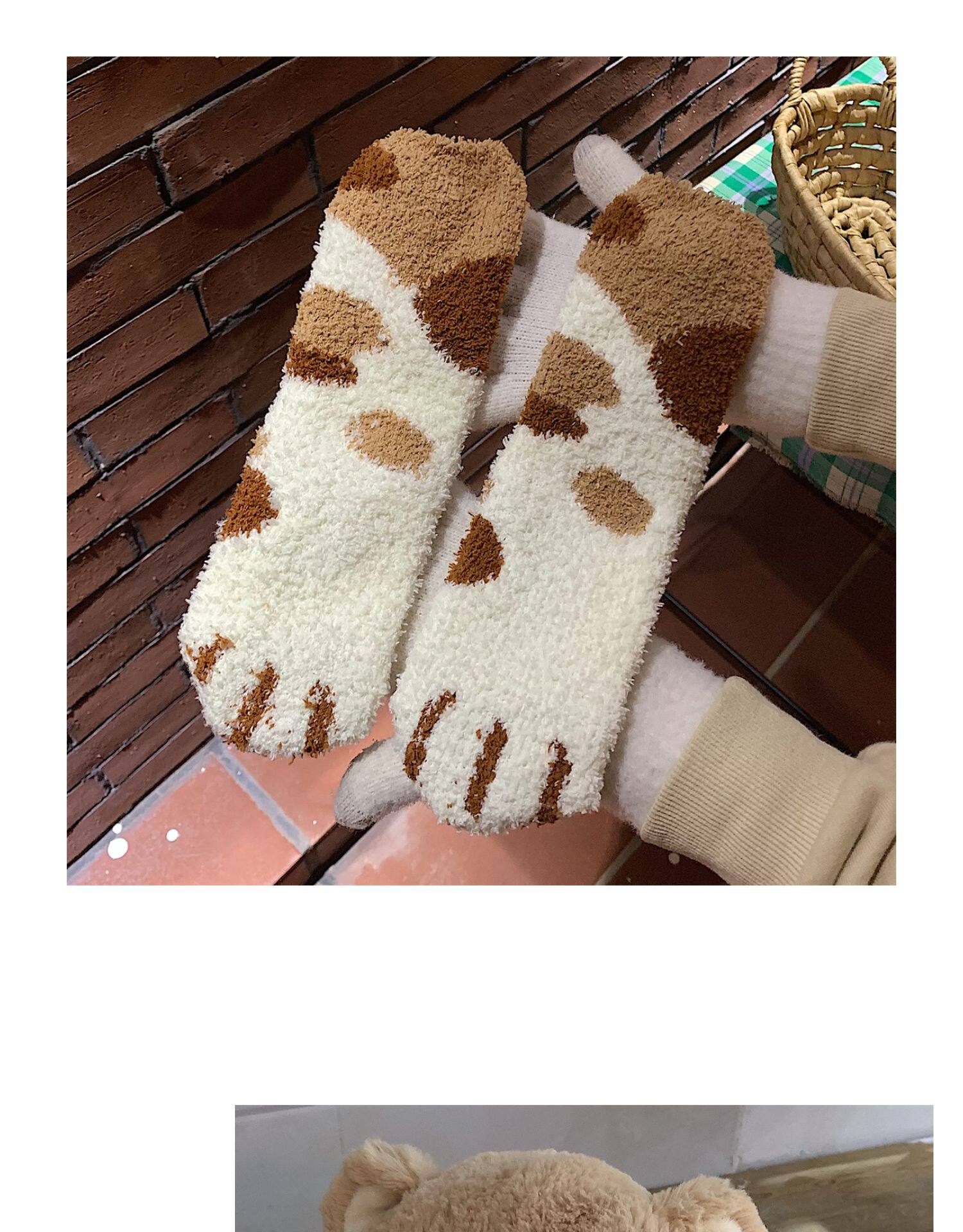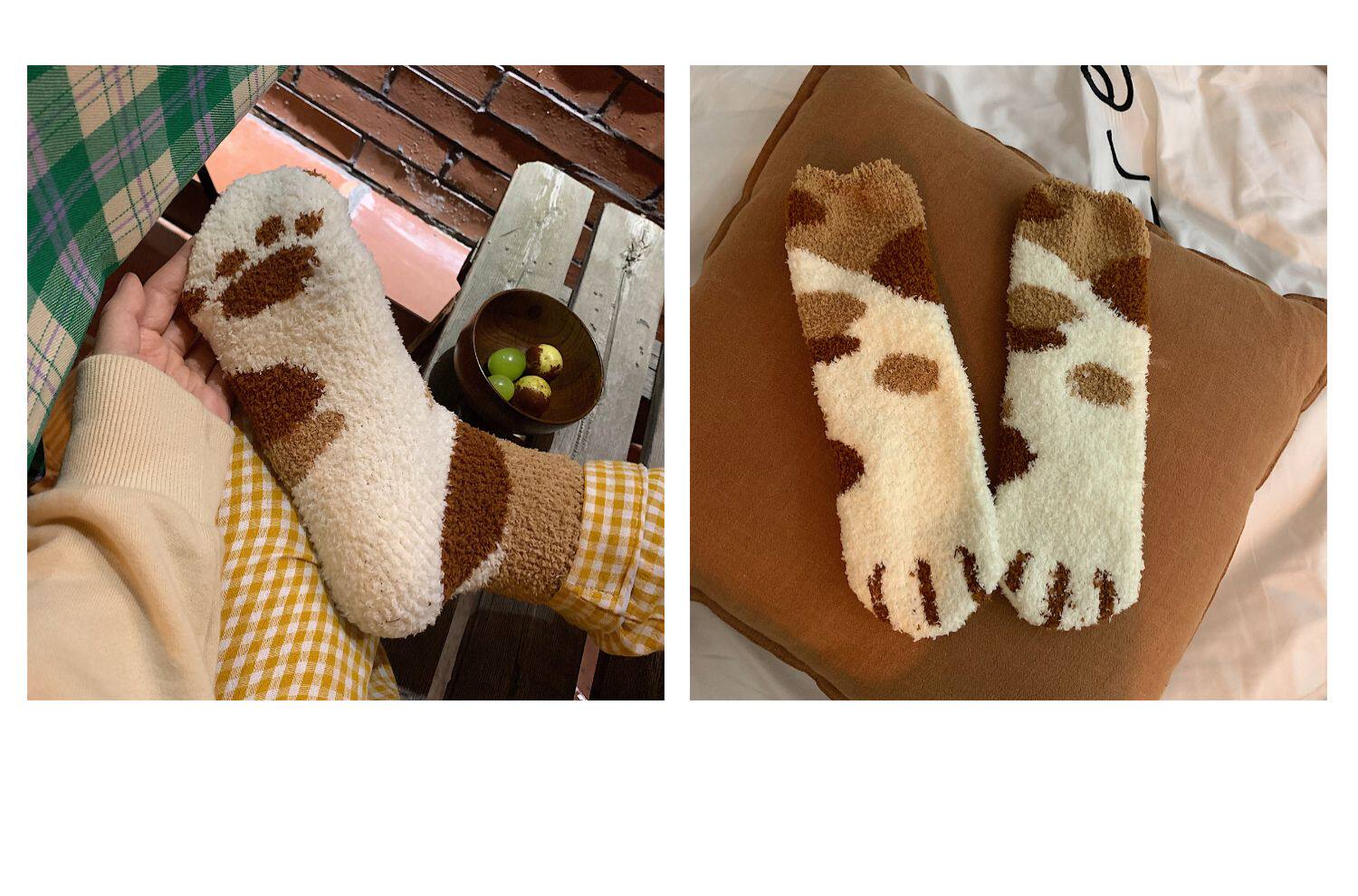 细细条 Зимние удерживающие тепло милые носки, коралловые бархатные гольфы, средней длины