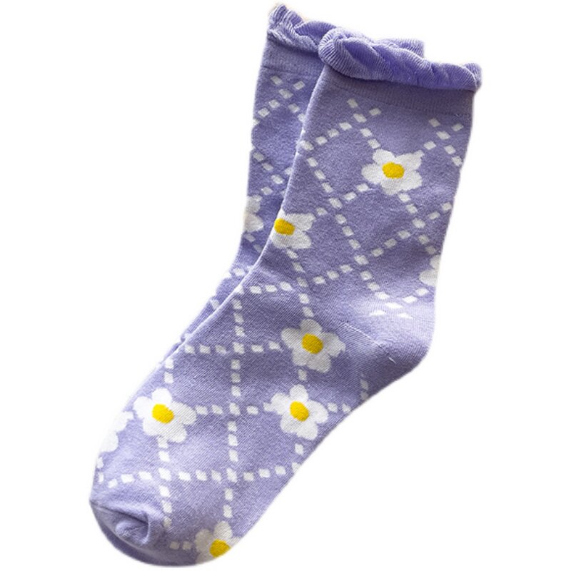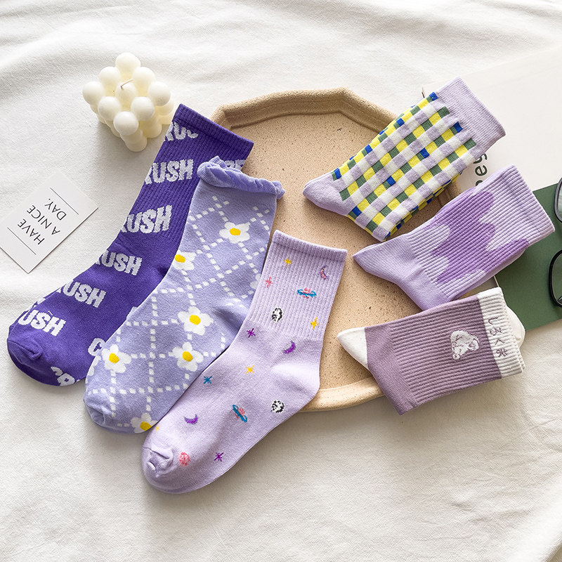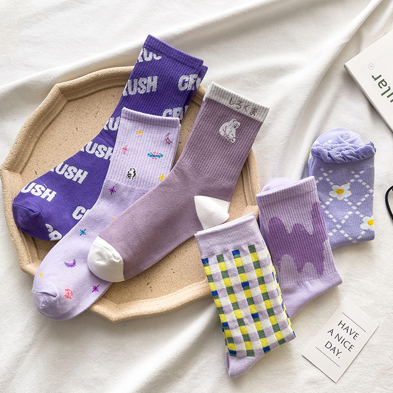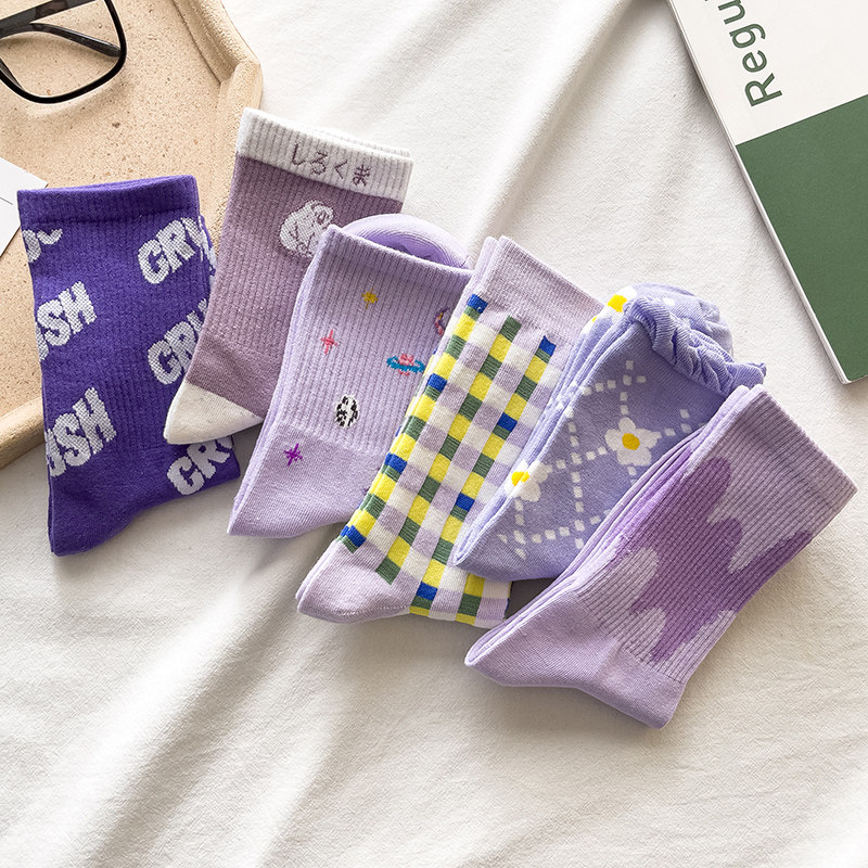 Японские милые сиреневые трендовые носки, средней длины
