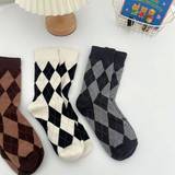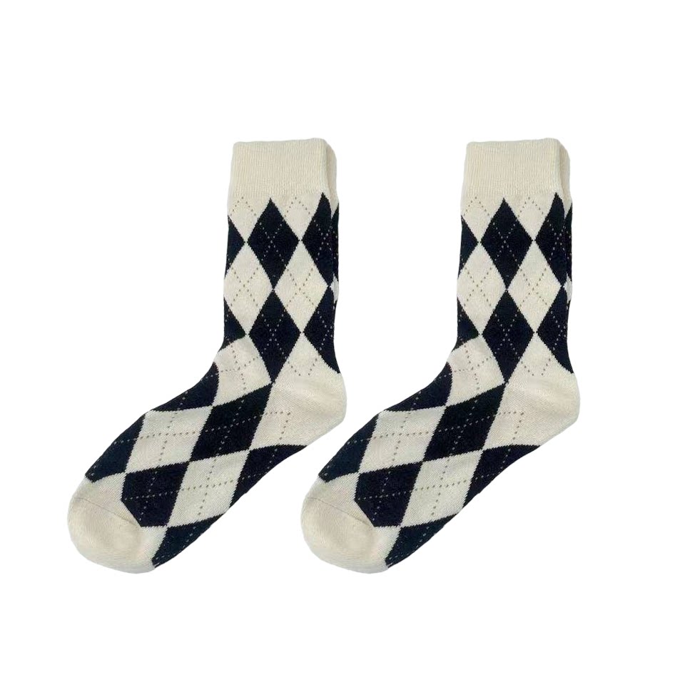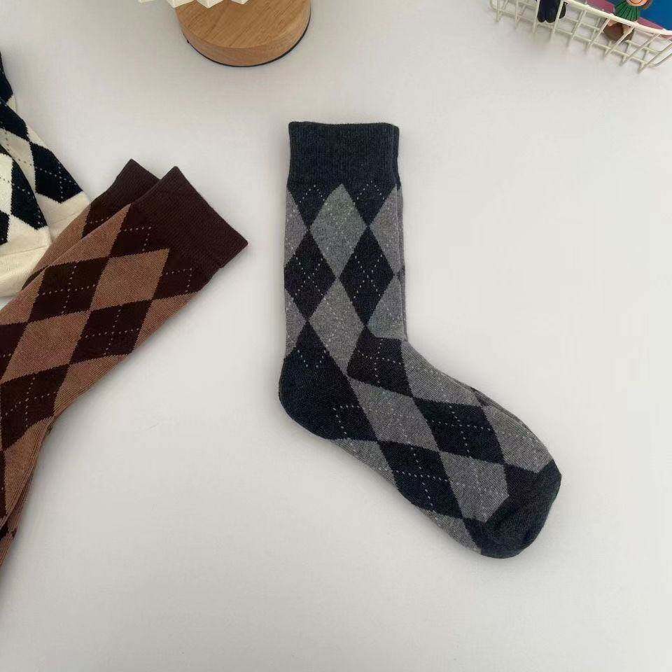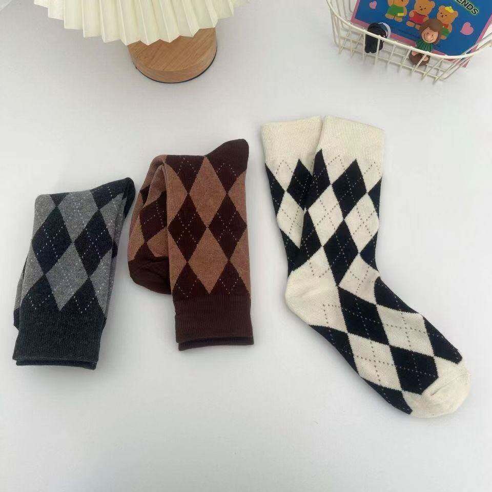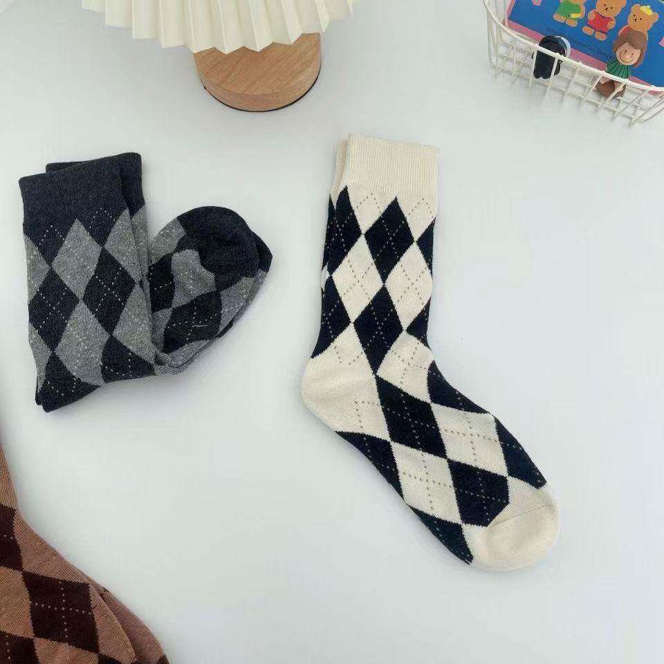 Демисезонные брендовые носки с ромбовидным узором, черные белые цветные японские коричневые гольфы