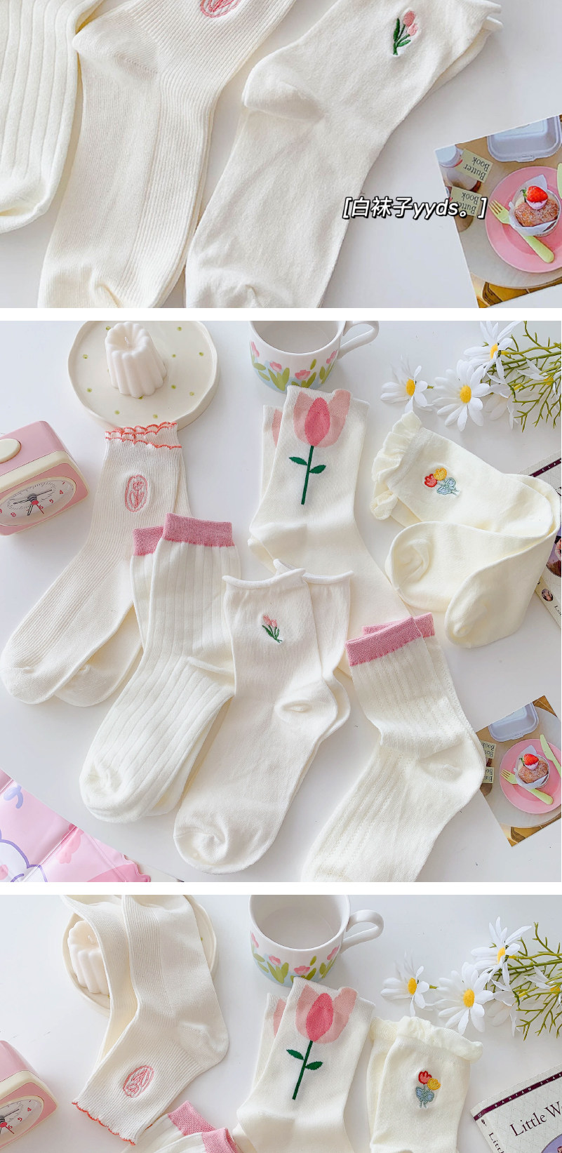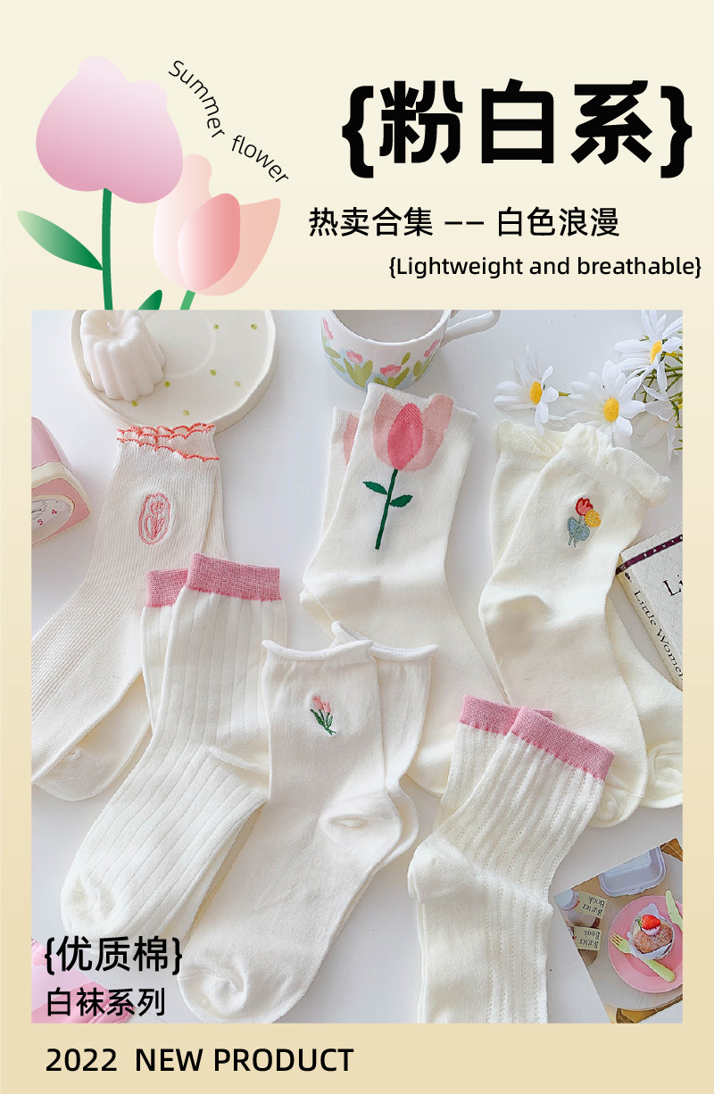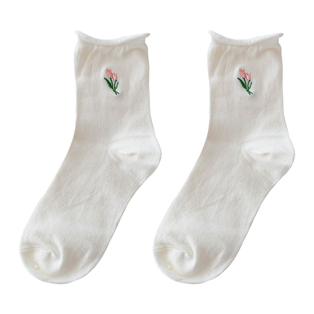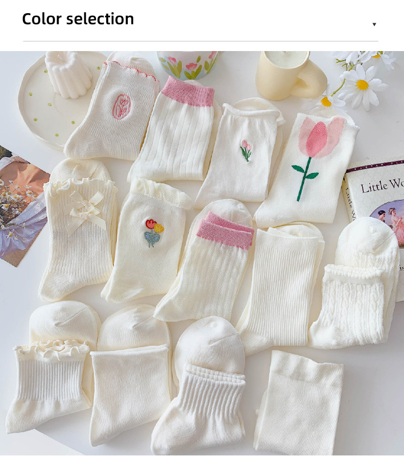 - Xia Nuo Milk-2202 Молочно-белые носки с розовым цветком и рисом