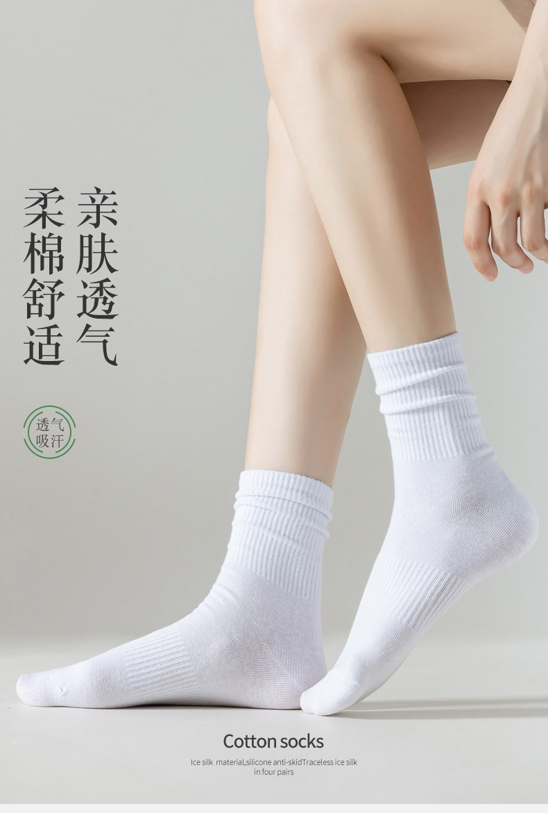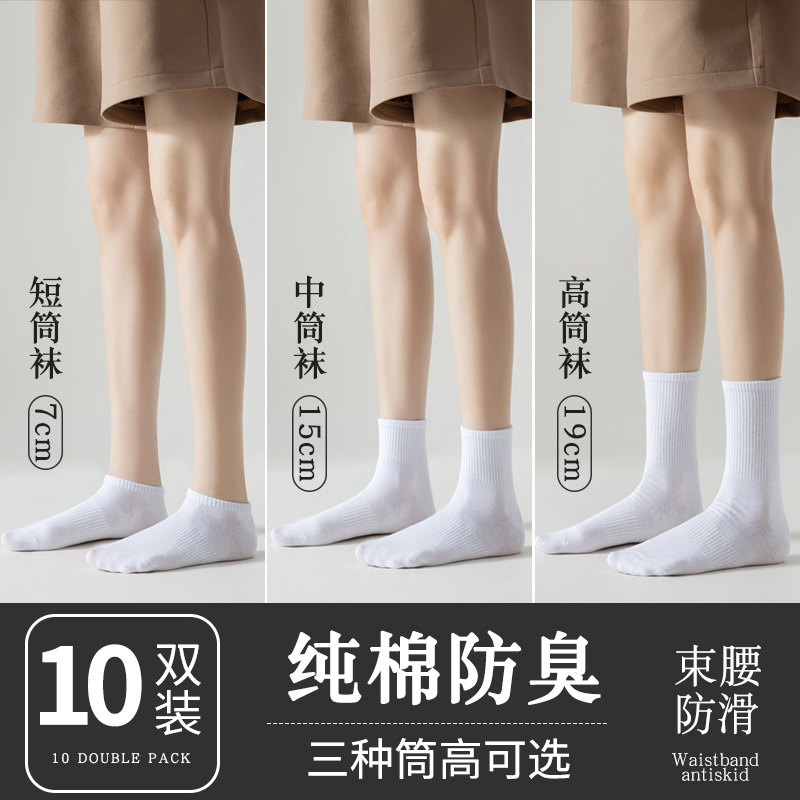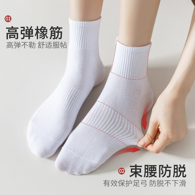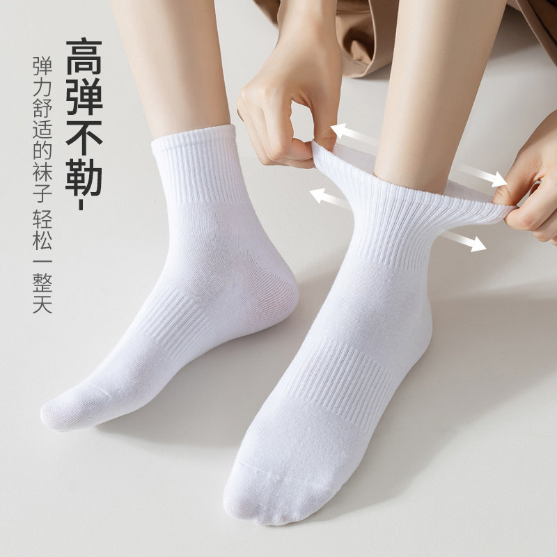 Белые носки, хлопковые летние спортивные гольфы, средней длины, осенние, впитывают пот и запах