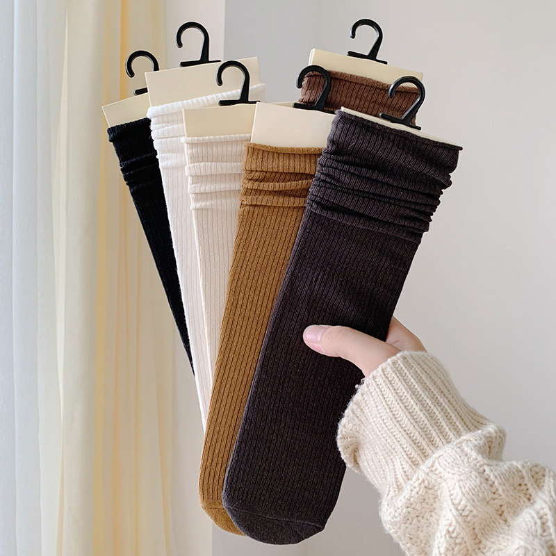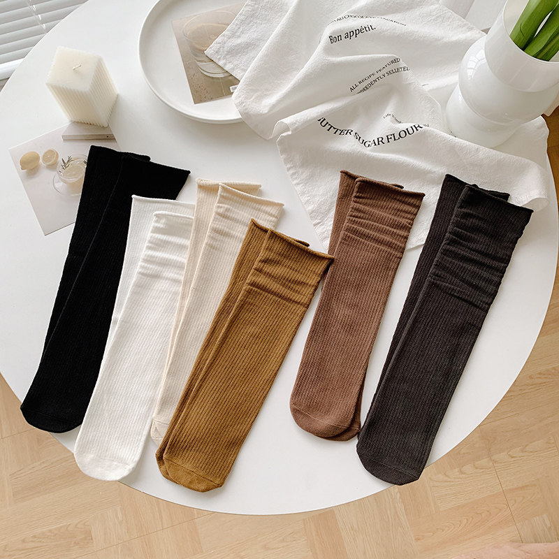 Пара носков осенью должна быть ее японской вертикальной сплошной ретро -куча хлопковых носков