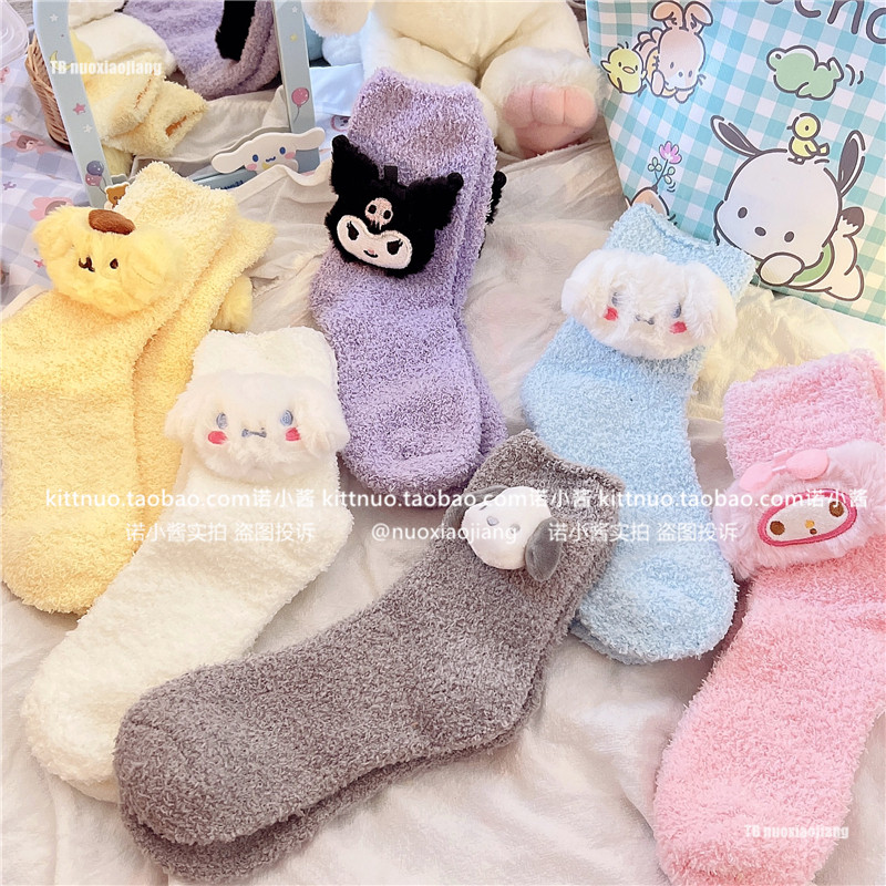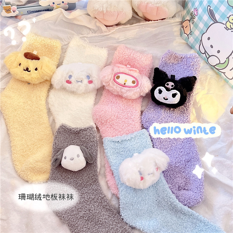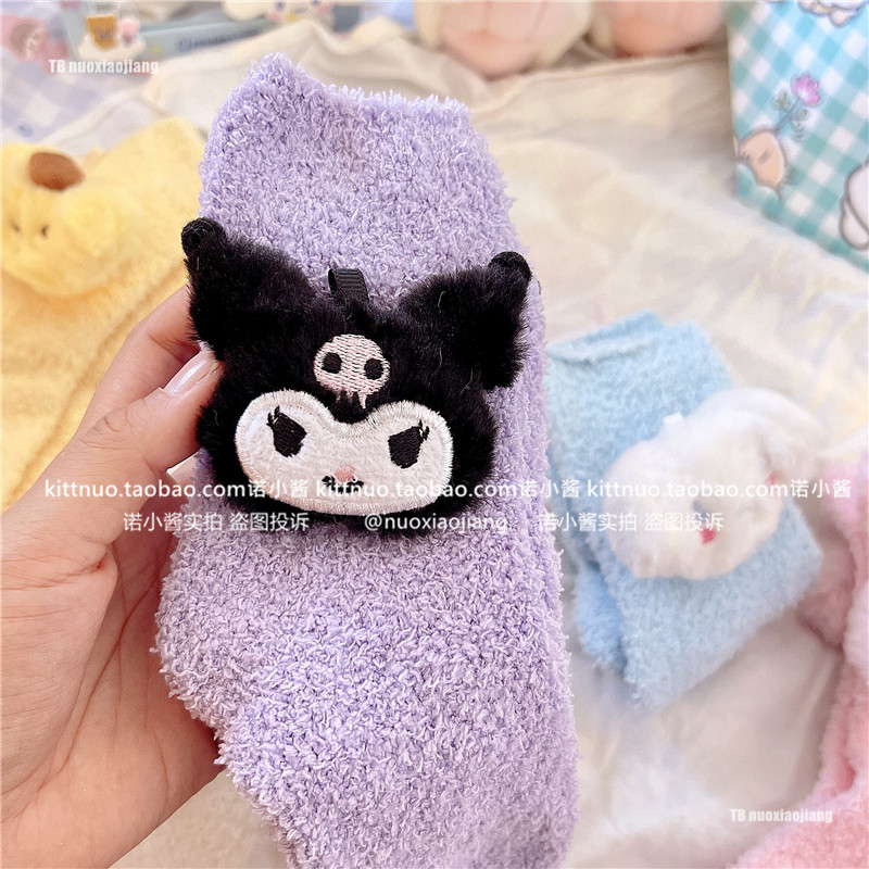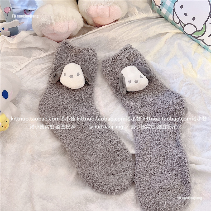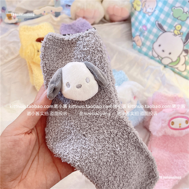 Пара зимняя девочка кораллы бархатные носки женщина милая собака Pacou Jade Dog Kuromi Пол Спящие Женские Носки