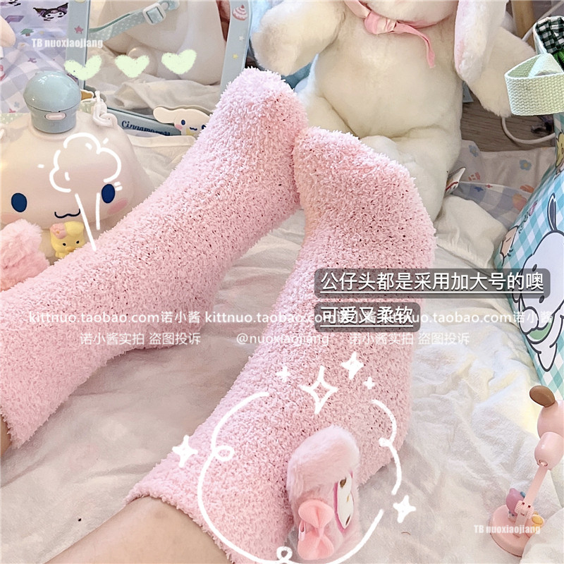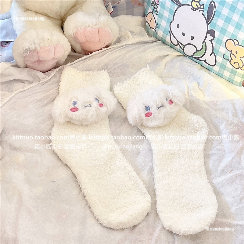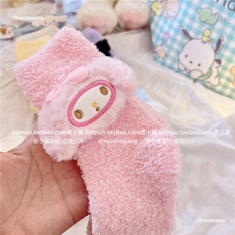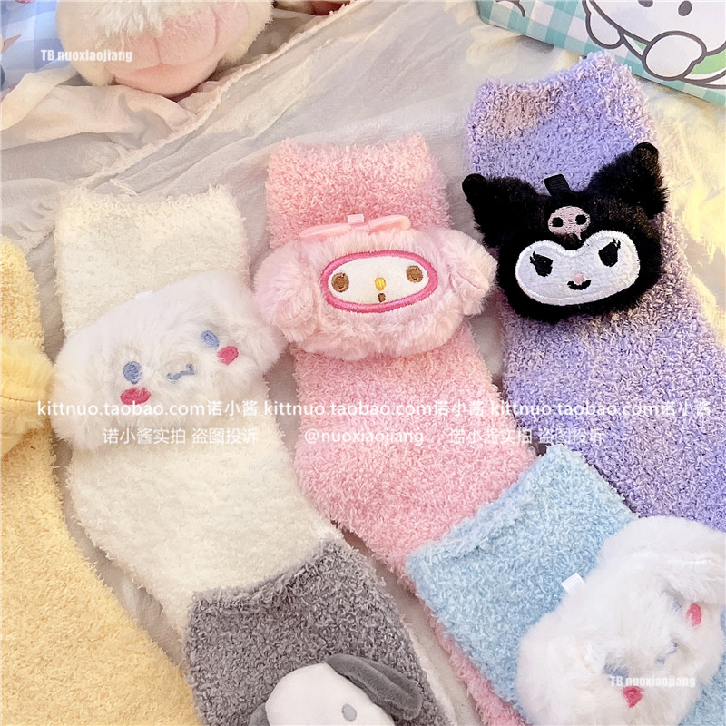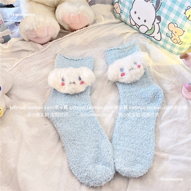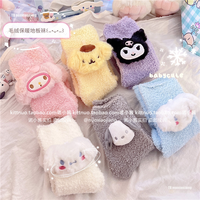 Пара зимняя девочка кораллы бархатные носки женщина милая собака Pacou Jade Dog Kuromi Пол Спящие Женские Носки