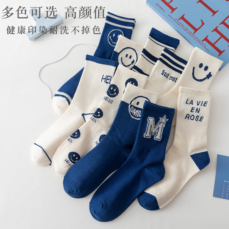 Демисезонные спортивные хлопковые тонкие милые японские носки, осенние, средней длины