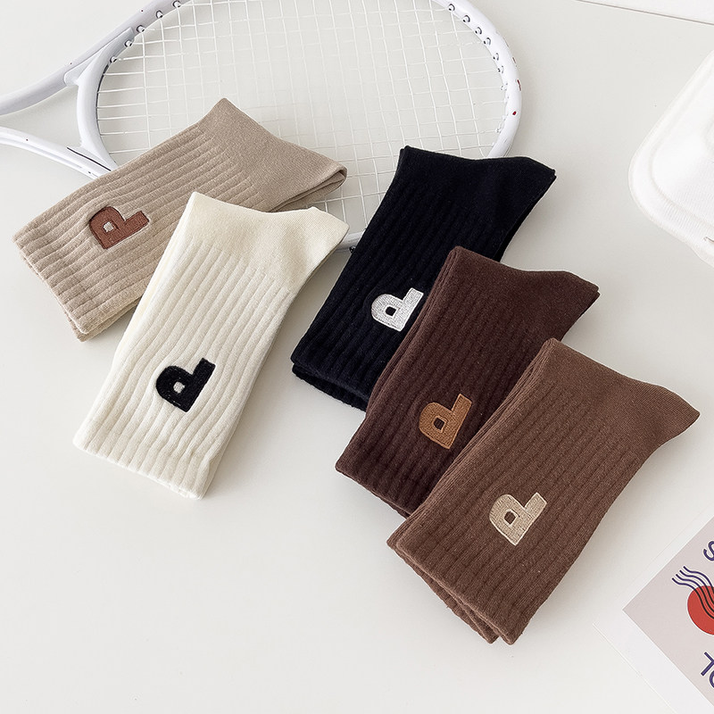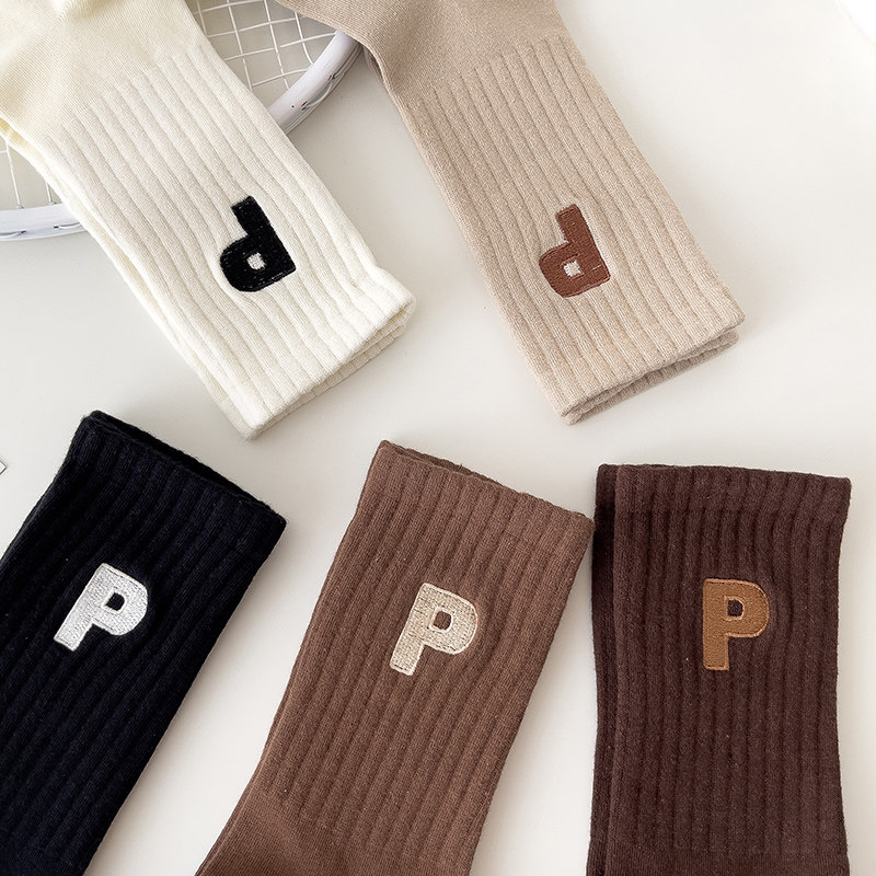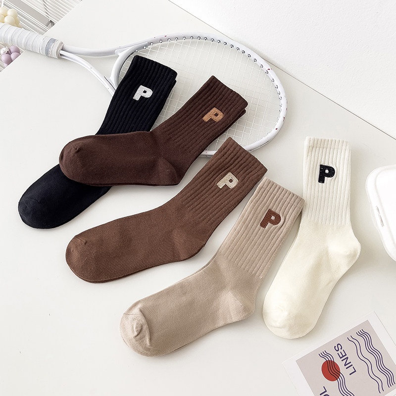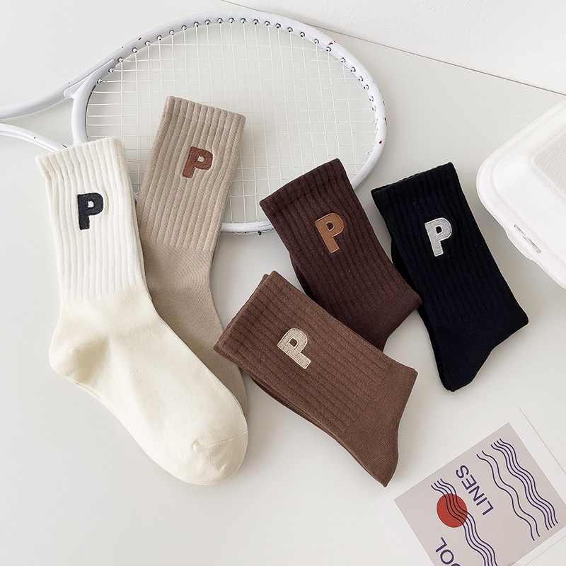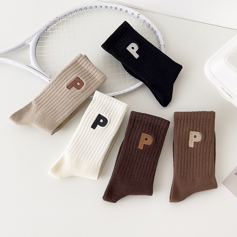 Tide, демисезонные спортивные гольфы, цветные коричневые носки, с вышивкой, буква P, средней длины