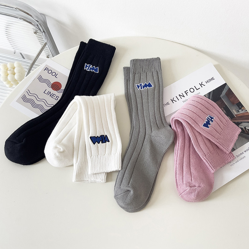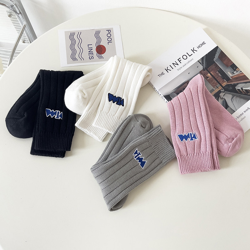Комфортные ретро спортивные демисезонные удерживающие тепло гольфы, с вышивкой, средней длины