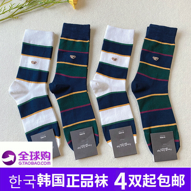 Импортные хлопковые гольфы, в корейском стиле, средней длины, с медвежатами