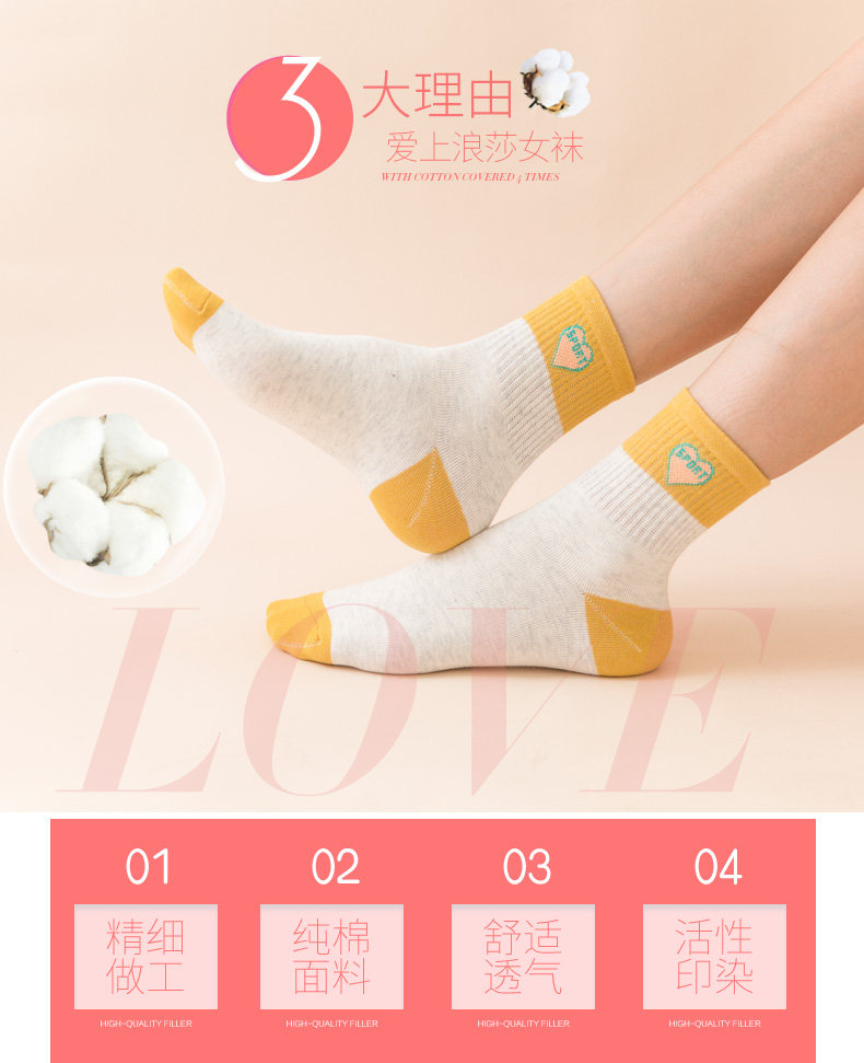 浪莎 Хлопковые носки, осенние демисезонные гольфы, средней длины