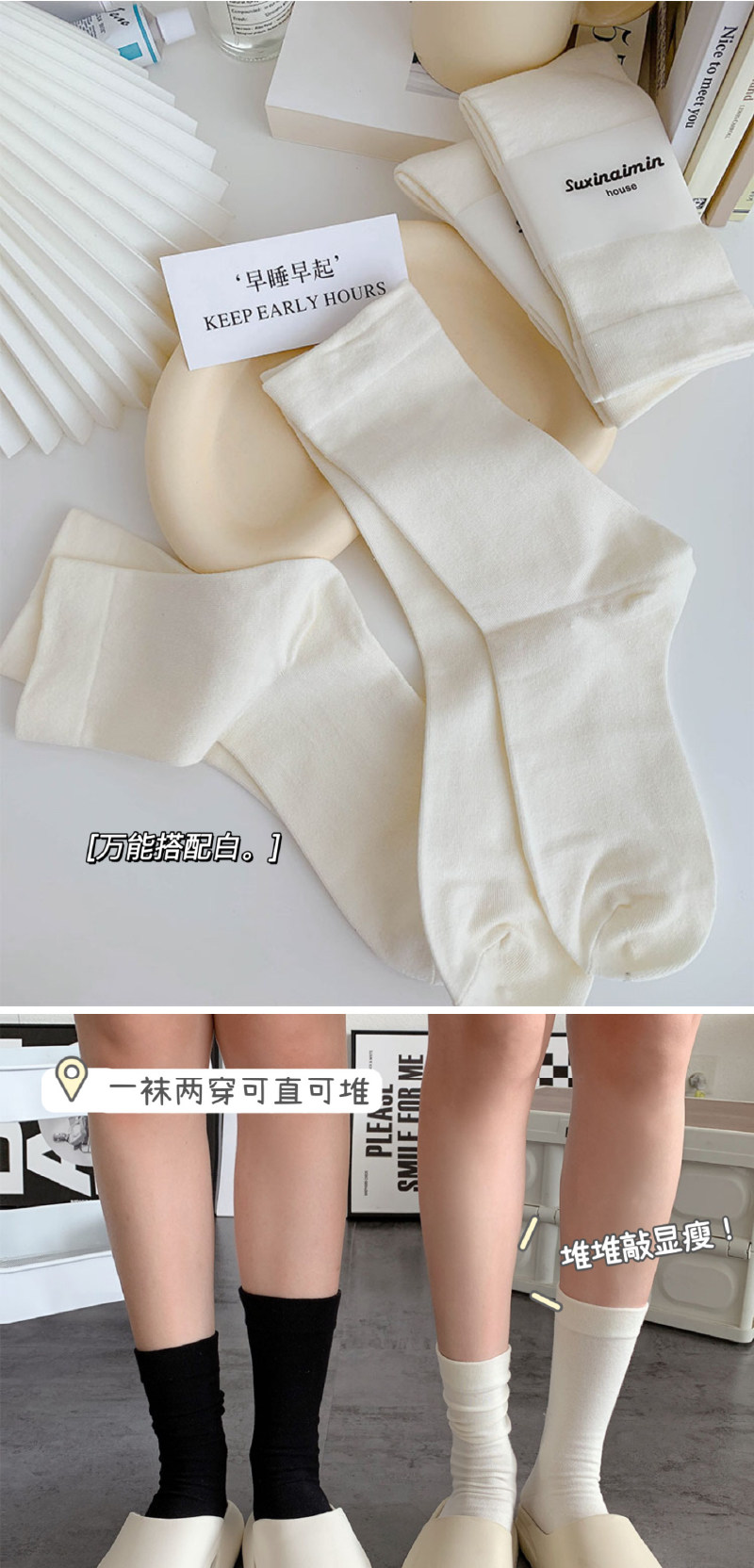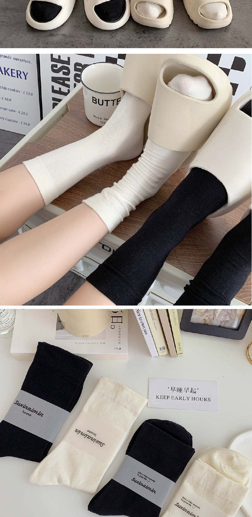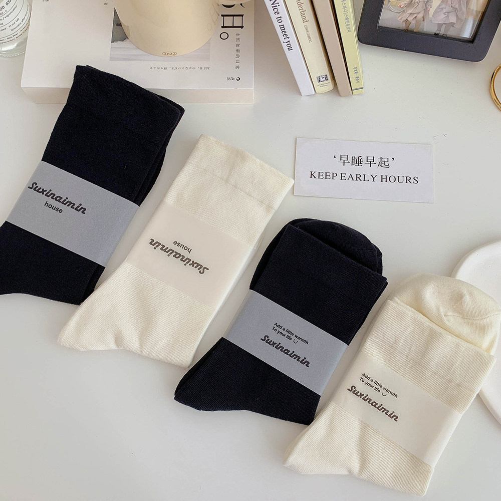 Tide, белые носки, осенние хлопковые японские демисезонные черные гольфы для беременных, средней длины