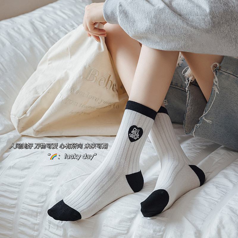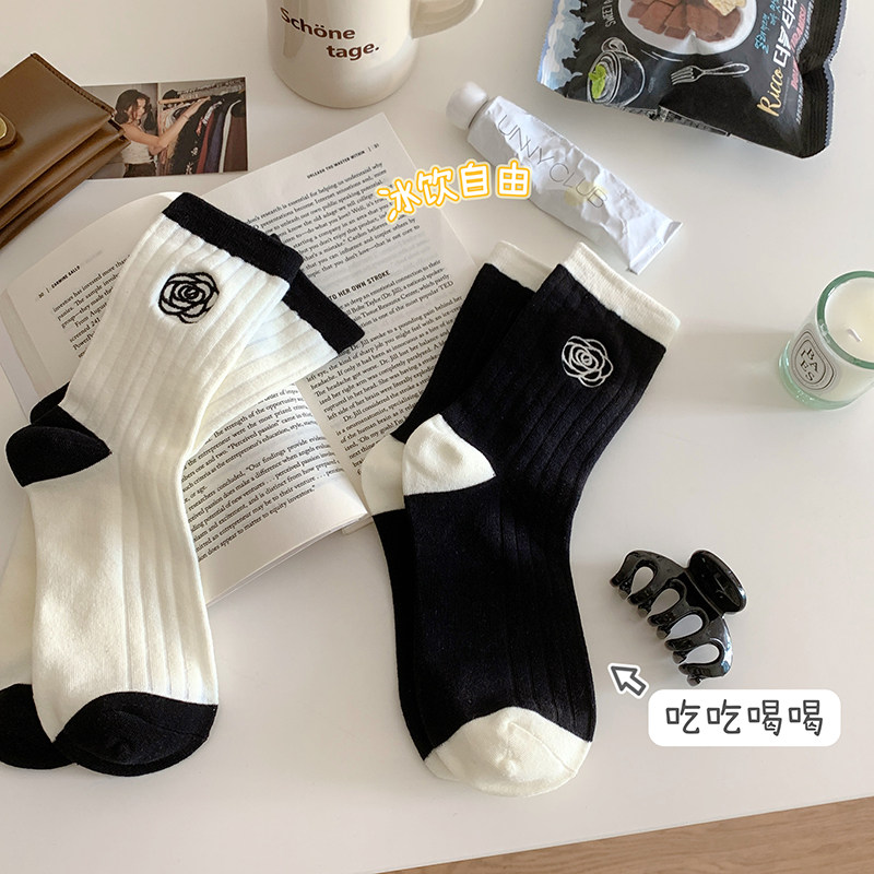 Tide, носки, горный чай, демисезонные гольфы, с вышивкой, в корейском стиле, средней длины