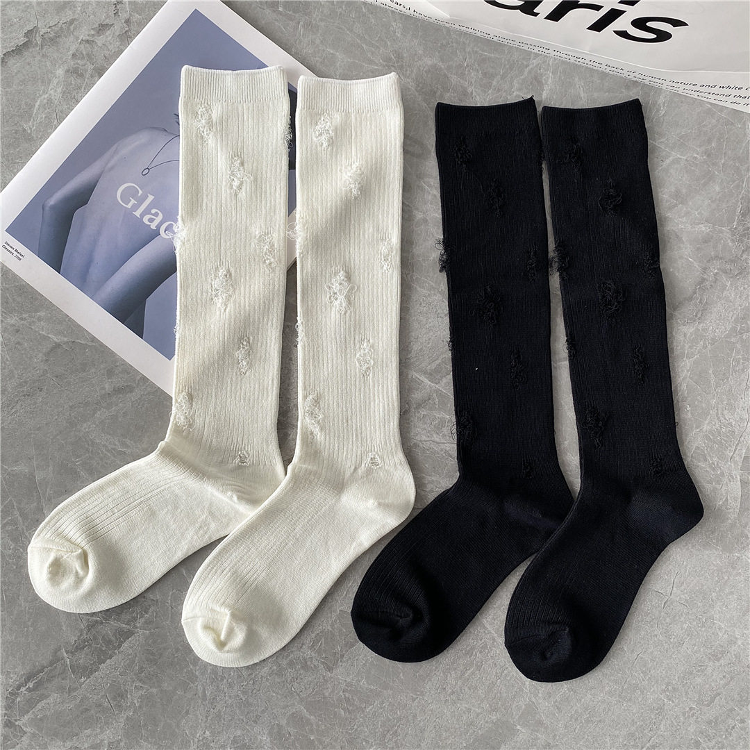 Новое нерегулярное отверстие, коленные носки, носки теленка, модальная хлопчатобумажная сеть красного цвета, те же самые высокие носки, черные белые носки прилива